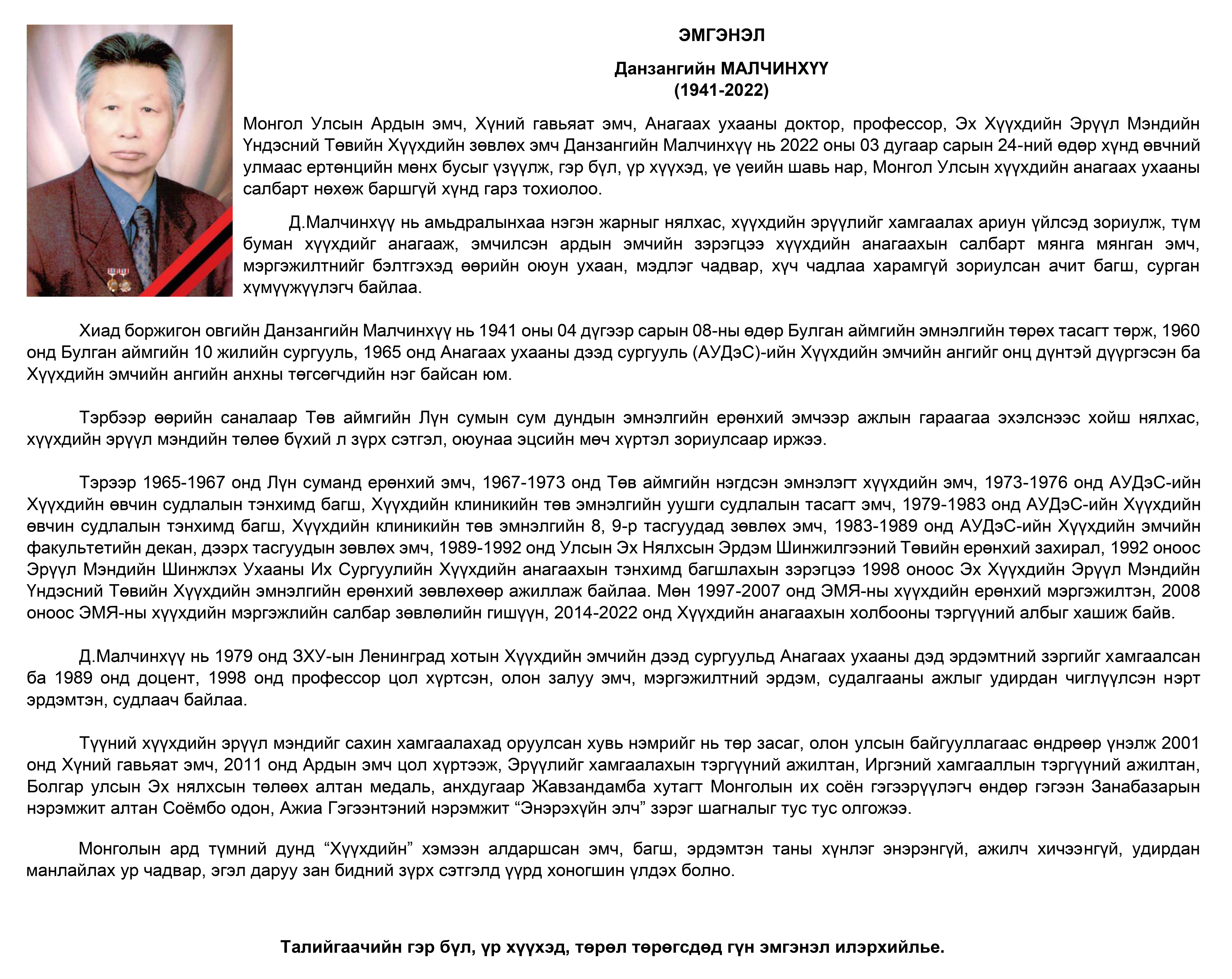 АРГАЧЛАЛ, ЗАГВАР БАТЛАХ ТУХАЙ ЗГХЭГ-ЫН ДАРГЫН 2020 ОНЫ 100 ДУГААР ТУШААЛ