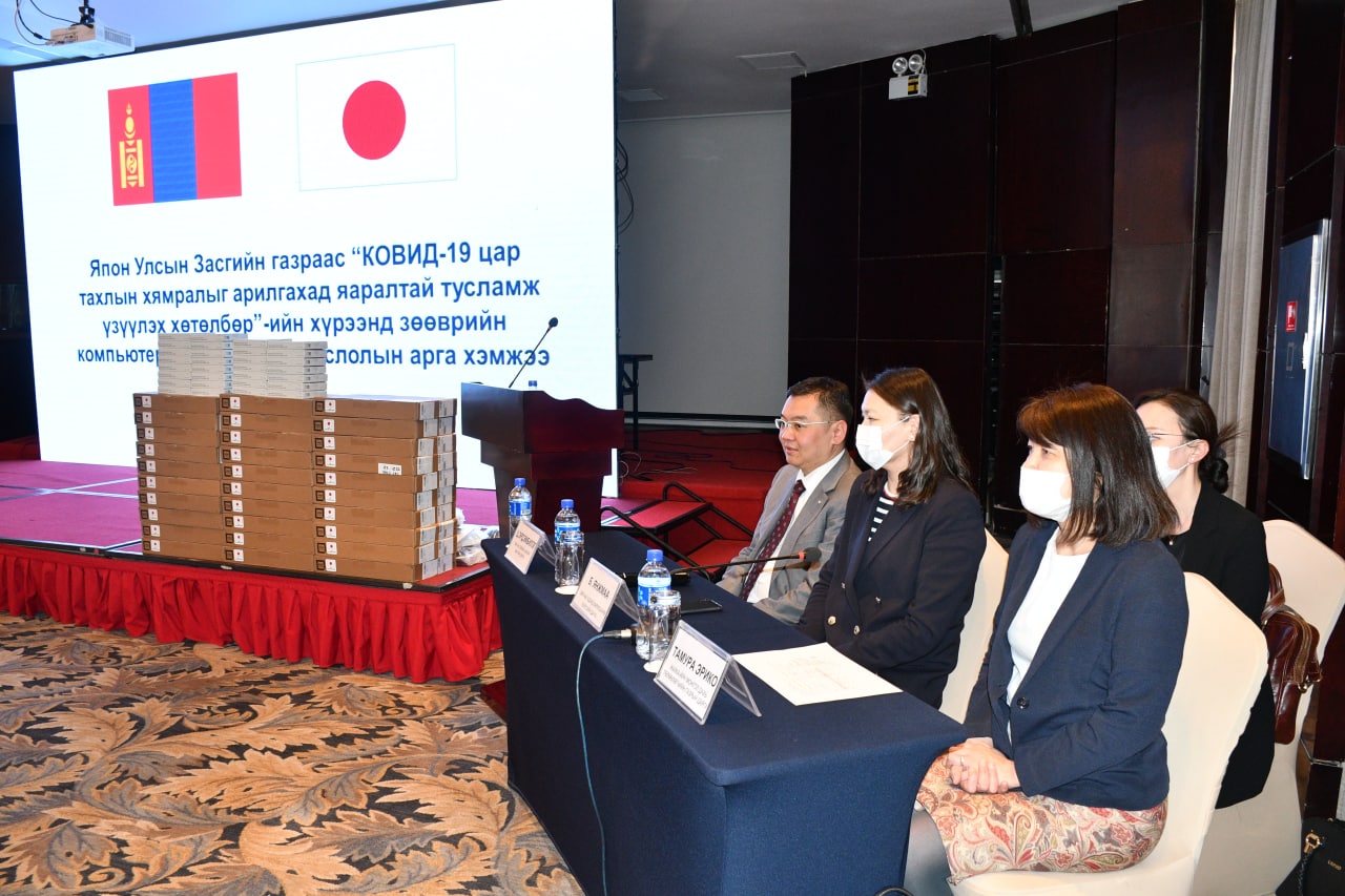Уулзалтын үеэр Япон Улсын Засгийн газраас Монгол Улсын Засгийн газарт КОВИД-19 цар тахалтай тэмцэхэд дэмжлэг үзүүлэх зорилгоор 883 сая иений санхүүжилт бүхий “КОВИД-19 халдварт цар тахлын хямралыг арилгахад яаралтай тусламж үзүүлэх хөтөлбөр”-ийн хүрээнд олгож буй зөөврийн компьютерын дээжийг гардуулан өгөх ёслолын арга хэмжээг зохион байгуулав. Тус арга хэмжээнд Эрүүл мэндийн яамны Төрийн нарийн бичгийн дарга Ц.Эрдэмбилэг, ЖАЙКА-Японы Олон улсын хамтын ажиллагааны байгууллагын Монгол Улс дахь Төлөөлөгчийн газрын дарга хатагтай Тамура Эрико болон албаны бусад хүмүүс оролцлоо.