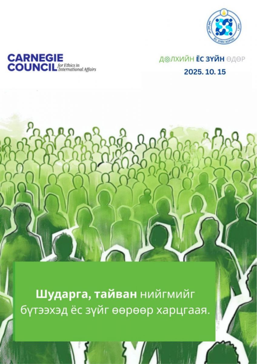 Өнөөдөр Дэлхийн ёс зүйн өдөр тохиож байна (2025.10.15). Дэлхий нийтээр жил бүрийн 10 дугаар сарын 3 дахь долоо хоногийн Лхагва гарагийг "Дэлхийн ёс зүйн өдөр" болгон тэмдэглэдэг. 2024 онд Монгол Улсын Ёс зүйн хороо байгуулагдсан ба тус өдрийг 2 дахь жилдээ тэмдэглэж байна.