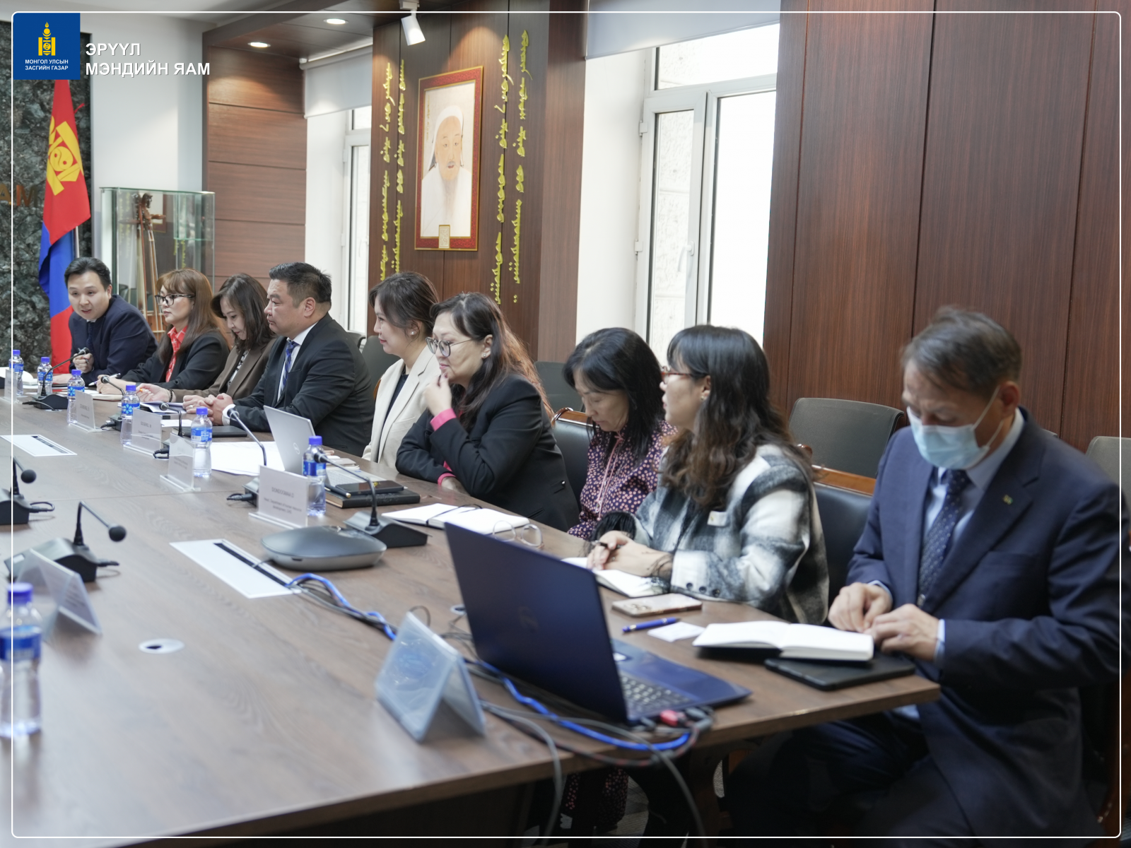 Эрүүл мэндийн сайдын зөвлөх Б.Дэмбэрэл, Салбарын хүний нөөцийн хөгжлийн хэлтсийн дарга Б.Туяа, Сувилахуйн тусламж, үйлчилгээний хэлтсийн дарга Б.Эрдэнэцэцэг, Эрүүл мэндийн хөгжлийн төвийн захирал М.Одгэрэл болон бусад холбогдох төлөөлөл нар АНУ-ын Rutgers их сургуулийн болон БНСУ-ын Олон улсын боловсрол солилцооны холбооны удирдах албаны бүрэлдэхүүнтэй уулзалт хийлээ. (2025.10.15)