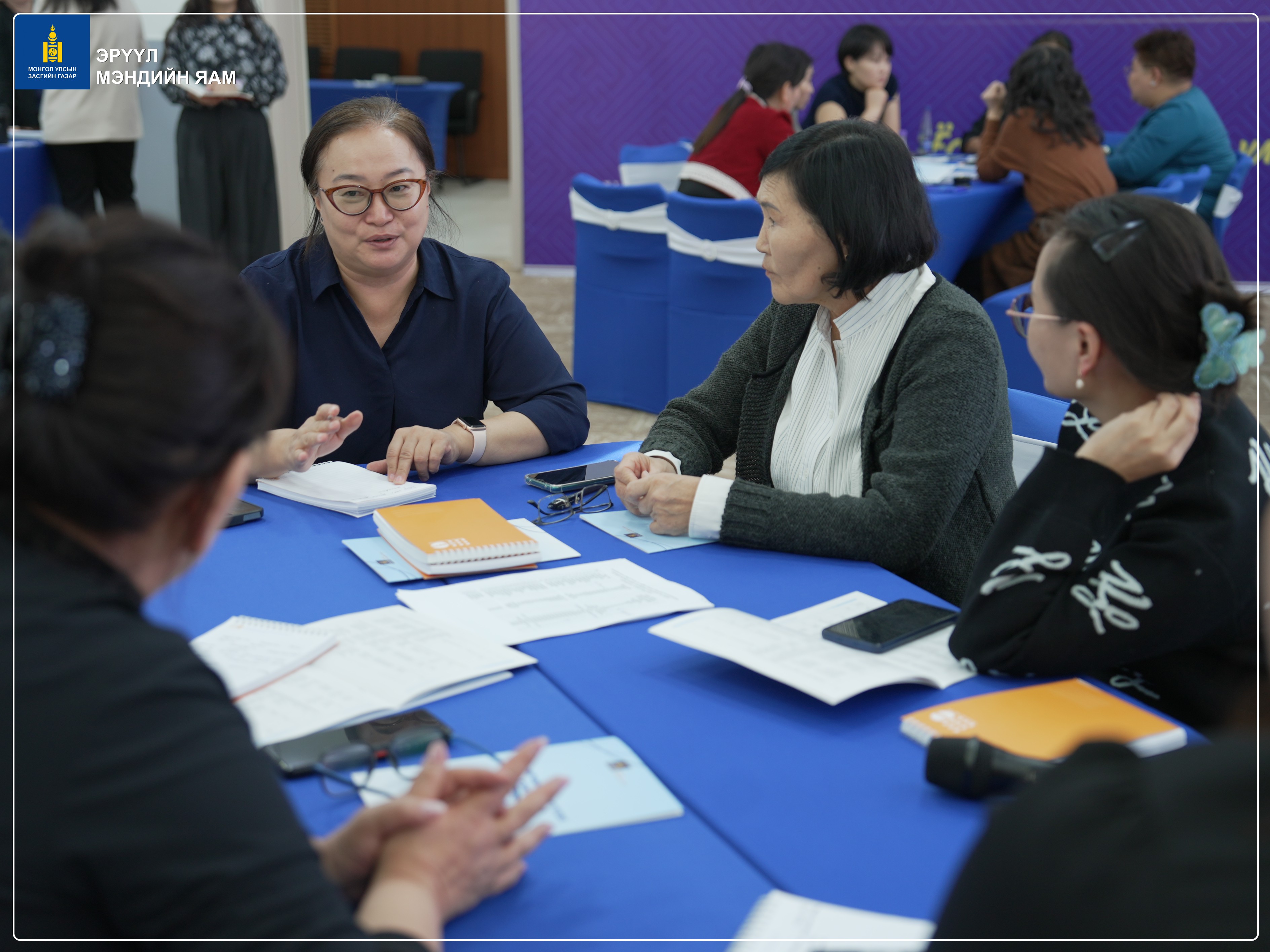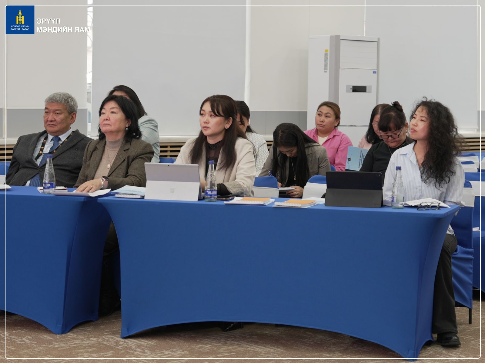 “Эх баригчаар гүйцэтгүүлэх эх, нярай, нөхөн үржихүйн эрүүл мэндийн тусламж, үйлчилгээний хүртээмжийг сайжруулах нь” хэлэлцүүлгийг өнөөдөр ЭМЯ-нд зохион байгууллаа. (2025.11.05) Эрүүл мэндийн сайдын 2025 оны A/264 дугаар тушаалаар батлагдсан, “Эх баригчийг хөгжүүлэх арга хэмжээний төлөвлөгөө 2025-2028”-ний хэрэгжилтийг хангах зорилгоор уг хэлэлцүүлэгийг хийж байгаа юм.