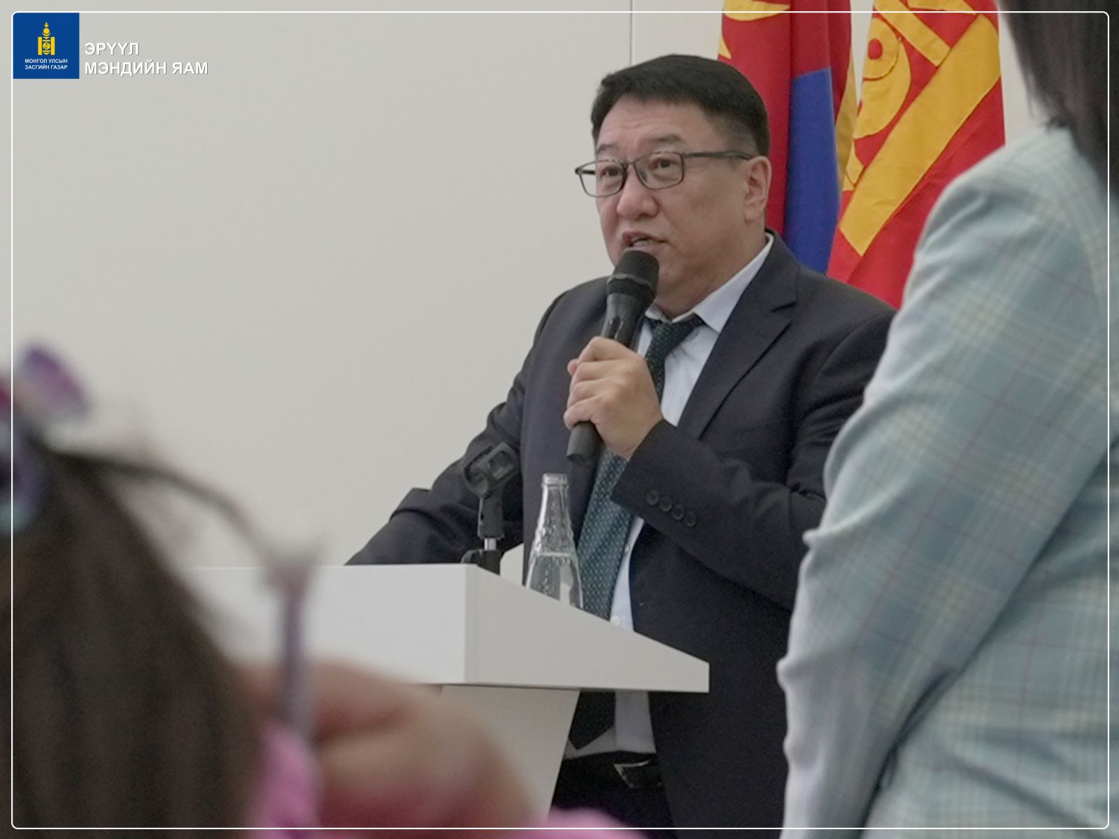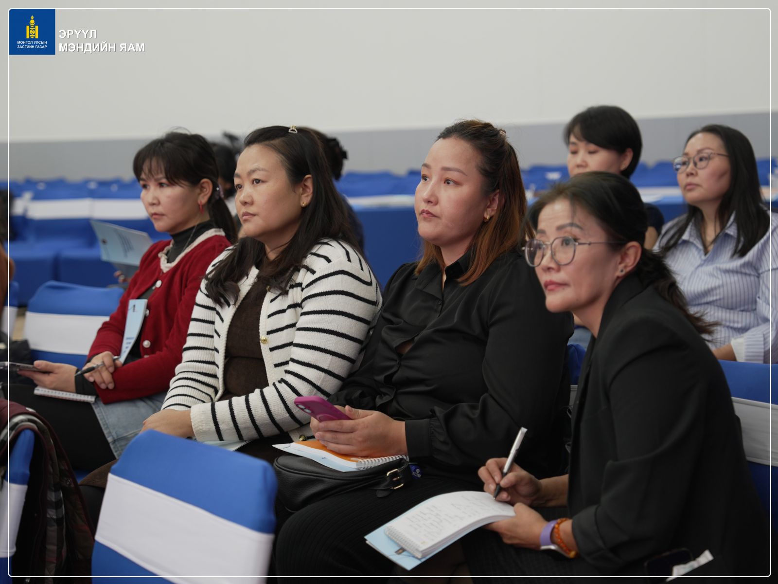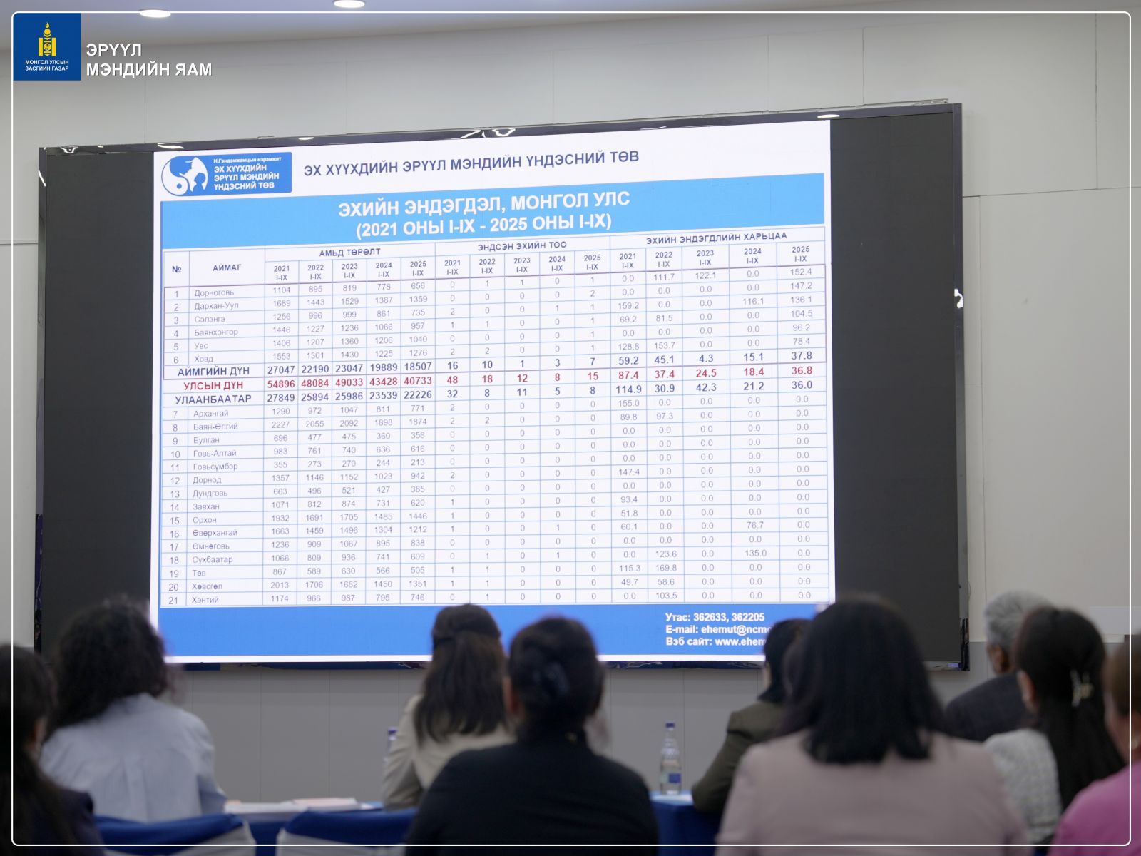 ЭМЯ-ны Сувилахуйн тусламж, үйлчилгээний хэлтсийн дарга Б.Эрдэнэцэцэг: “Эх баригчийг хөгжүүлэх арга хэмжээний төлөвлөгөө 2025-2028”-ыг хэрэгжүүлэх Эрүүл мэндийн сайдын 2025 оны A/264 дугаар тушаал нь 2025 оны 07 дугаар сарын 09-ны өдөр батлагдсан. Уг төлөвлөгөөг боловсруулахад эх барихын салбарын бүх мэргэжилтэн, амаржих газруудын төлөөлөл оролцсон гэдгийг тодотгоод уг төлөвлөгөөний хүрээнд хэрэгжүүлэх ажлуудаас танилцуулав. Үүнд: