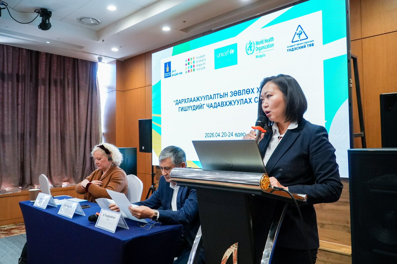 Австрали Улсын Мурдокийн хүүхдийн судалгааны төв, НҮБ-ын Хүүхдийн сангийн дэмжлэгтэйгээр Эрүүл мэндийн яамны дэргэдэх Дархлаажуулалтын зөвлөх хорооны гишүүдийг чадавхжуулах сургалтыг Халдварт өвчин судлалын үндэсний төвтэй хамтран 2026 оны 04 дүгээр сарын 20-24-ний өдрүүдэд зохион байгуулж байна. Сургалтыг нээж Эрүүл мэндийн яамны Нийгмийн эрүүл мэндийн бодлогын хэрэгжилтийн газрын дарга, доктор Б.Цэцэгсайхан, НҮБ-ын Хүүхдийн сангийн Монгол Улс дахь суурин төлөөлөгч хатагтай Биате Дастел болон тус хорооны дарга, доктор, профессор С.Цогтсайхан нар үг хэллээ.Дархлаажуулалтын зөвлөх хороо нь дархлаажуулалтын бодлогыг шинжлэх ухааны үндэслэлтэйгээр тодорхойлоход чухал үүрэг гүйцэтгэдэг ба вакцин нэвтрүүлэх, товлол шинэчлэх зэрэг стратегийн шийдвэрүүдийг олон улсын болон үндэсний судалгаа, тархвар судлалын мэдээлэл, зардал-үр ашгийн шинжилгээнд тулгуурлан боловсруулдгаараа онцлогтой.