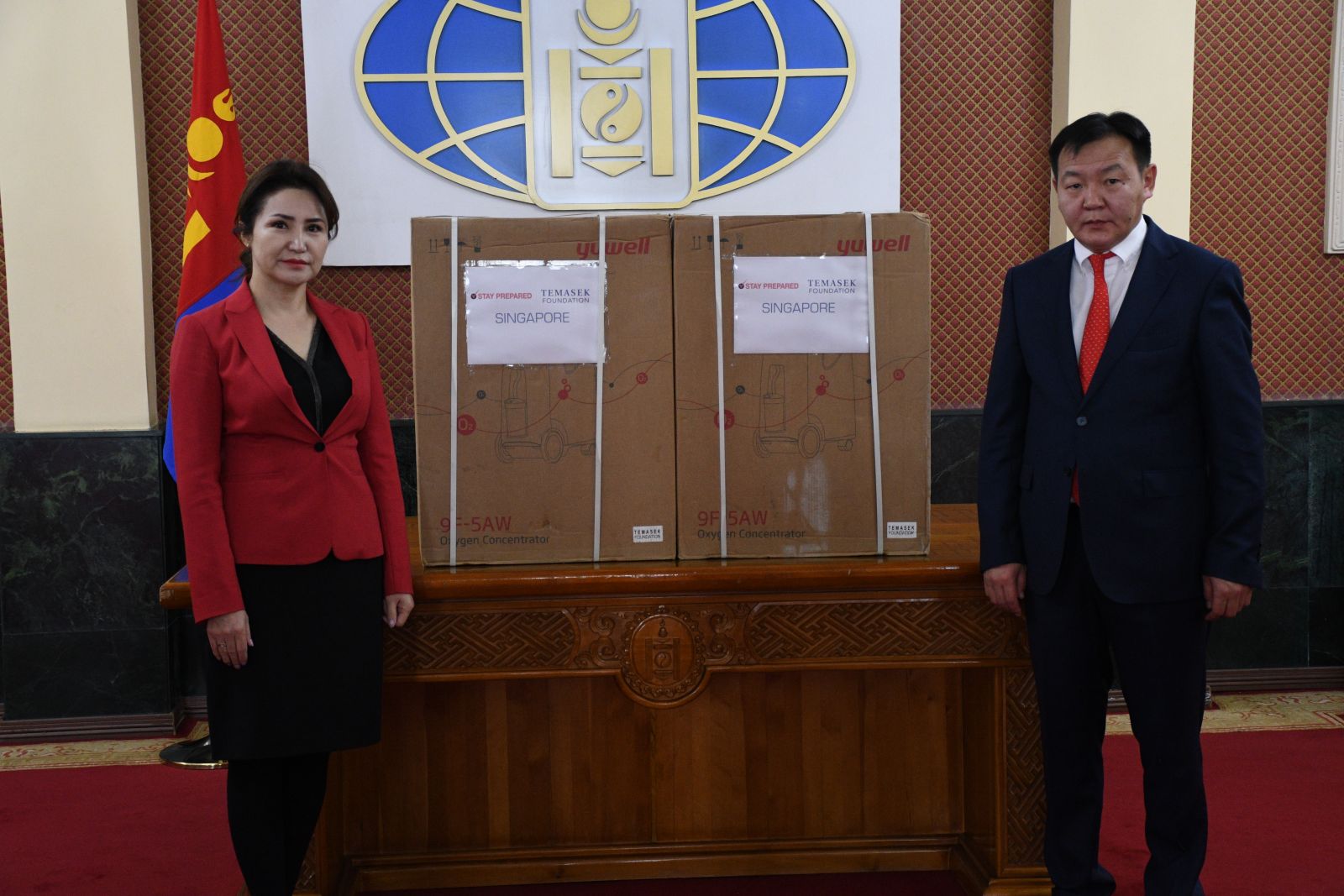 Сингапур Улсын Темасек олон улсын сангаас Монгол Улсын эмнэлгүүдэд зориулж амьсгалын цочмог үрэвсэлтэй өвчтнүүдийн хүчилтөрөгчийн хангамжийг нэмэгдүүлэх зориулалт бүхий 10 ширхэг хүчилтөрөгч өтгөрүүлэгч аппарат хандивласныг Гадаад харилцааны яамны Төрийн нарийн бичгийн дарга Н.Анхбаяр Эрүүл мэндийн яаманд өнөөдөр хүлээлгэн өгөв. Ёслолын арга хэмжээнд Эрүүл мэндийн дэд сайд Ш.Анхмаа болон албаны бусад хүмүүс оролцов.Энэ жил Монгол Улс, Сингапур Улсын хооронд дипломат харилцаа тогтоосны 50 жилийн ой тохиож байгаа бөгөөд өнгөрсөн хугацаанд хоёр улсын харилцаа бүхий л салбарт өргөжин тэлж, нэн ялангуяа худалдаа, эдийн засаг, хөрөнгө оруулалт, хүмүүнлэгийн салбарт эрчимтэй хөгжиж байна. Сингапур Улс Монгол Улсын хөгжлийг идэвхтэй дэмжиж ирсний дотор манай төрийн албан хаагчдыг чадавхижуулан бэлтгэхэд, мөн эрүүл мэндийн салбарын ажилтнууд болон хувийн хэвшлийн боловсон хүчинг сургахад үнэтэй хувь нэмэр оруулж ирсэн.