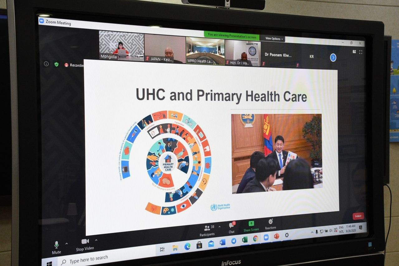 Монгол Улс Дэлхийн эрүүл мэндийн байгууллагын Номхон далайн баруун бүсэд харьяалагддагийн хувьд тус бүсийн төвөөс санал болгосны дагуу УИХ-ын гишүүн Д.Сарангэрэл “КОВИД-19 халдвартай тэмцэж байгаа Монгол Улсын туршлага хийгээд бүх нийтийн хамралт” сэдвээр илтгэл тавилаа. Тэрбээр цар тахлын аюулаас урьдчилан сэргийлэх, тархалтыг хязгаарлах чиглэлээр Монгол Улсын авч хэрэгжүүлсэн нийгмийн эрүүл мэндийн арга хэмжээнүүдийг товч танилцуулж, улмаар улс орны нийгэм, эдийн засгийн амьдралд цар тахлын үзүүлж байгаа сөрөг нөлөөллийг даван туулах чиглэлээр Улсын Их Хурлаас баталж Засгийн газраас хэрэгжүүлсэн цогц арга хэмжээнүүдийг тайлагнав. Тухайлбал, цар тахлын хүнд нөхцөл байдлыг даван туулах зорилгоор Засгийн газар улсын төсөвт тодотгол хийж, эдийн засгийг идэвхжүүлэх, иргэдийн эрүүл мэндийг хамгаалж, аж ахуйн нэгжүүдийн орлого, үйл ажиллагааг дэмжих арга хэмжээг он дуустал үргэлжлүүлэн хэрэгжүүлж байгаа талаар болон ажлын байрыг хадгалах, өрхийн амьжиргааг дэмжих зорилгоор хүүхдийн тоогоор мөнгөн дэмжлэг үзүүлэх, аж ахуйн нэгжүүдийг нийгмийн даатгалын шимтгэлээс чөлөөлөх, хугацаа хойшлуулах зэрэг олон төрлийн арга хэмжээ авч байгаа талаар танилцуулав.