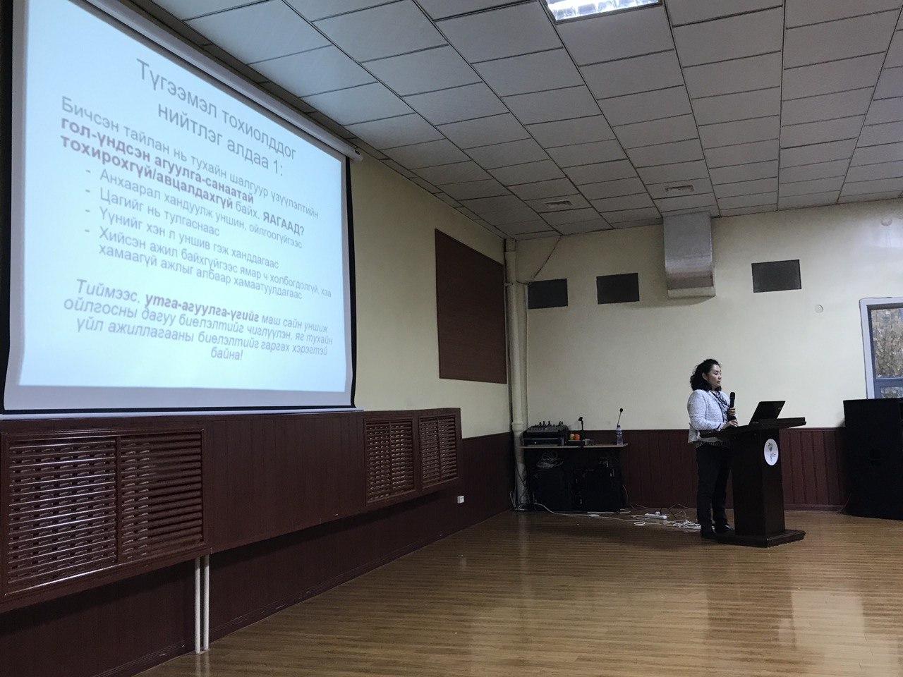 “Өрхийн эрүүл мэндийн төвийг магадлан итгэмжлэлд бэлтгэх нь” сургалтыг батлагдсан хөтөлбөрийн дагуу зохион байгуулж, Эрүүл мэндийн сайдын 2017 оны А/503 дугаар тушаалаар батлагдсан “Эрүүл мэндийн байгууллагыг магадлан итгэмжлэх журам, 2020 оны А179 дүгээр тушаалаар батлагдсан “Өрхийн эрүүл мэндийн төвийг магадлан шинжлэх шалгуур”-ын агуулга, шалгуур үзүүлэлтэд орсон нэмэлт, өөрчлөлт болон “Үйлчлүүлэгчийн аюулгүй байдал, халдварын сэргийлэлт, хяналт, Эмнэлгийн тусламж, үйлчилгээ, Байгууллагын үйл ажиллагаа, Тоног төхөөрөмж, барилга инженерийн байгууламжийн аюулгүй ажиллагаа, засвар үйлчилгээг үнэлэх шалгуур үзүүлэлтээр байгууллага өөрийн үнэлгээ хийх нь” сэдвүүдээр хичээл зааж, өөрийн үнэлгээ хийхэд гардаг нийтлэг дутагдалтай талууд, анхаарах асуудлын талаар зөвлөгөө өгч, санал солилцсон. Мөн магадлан итгэмжлүүлэх баримт бичиг бүрдүүлэх, хүсэлт гаргах талаар зөвлөмж өгч ажиллалаа.