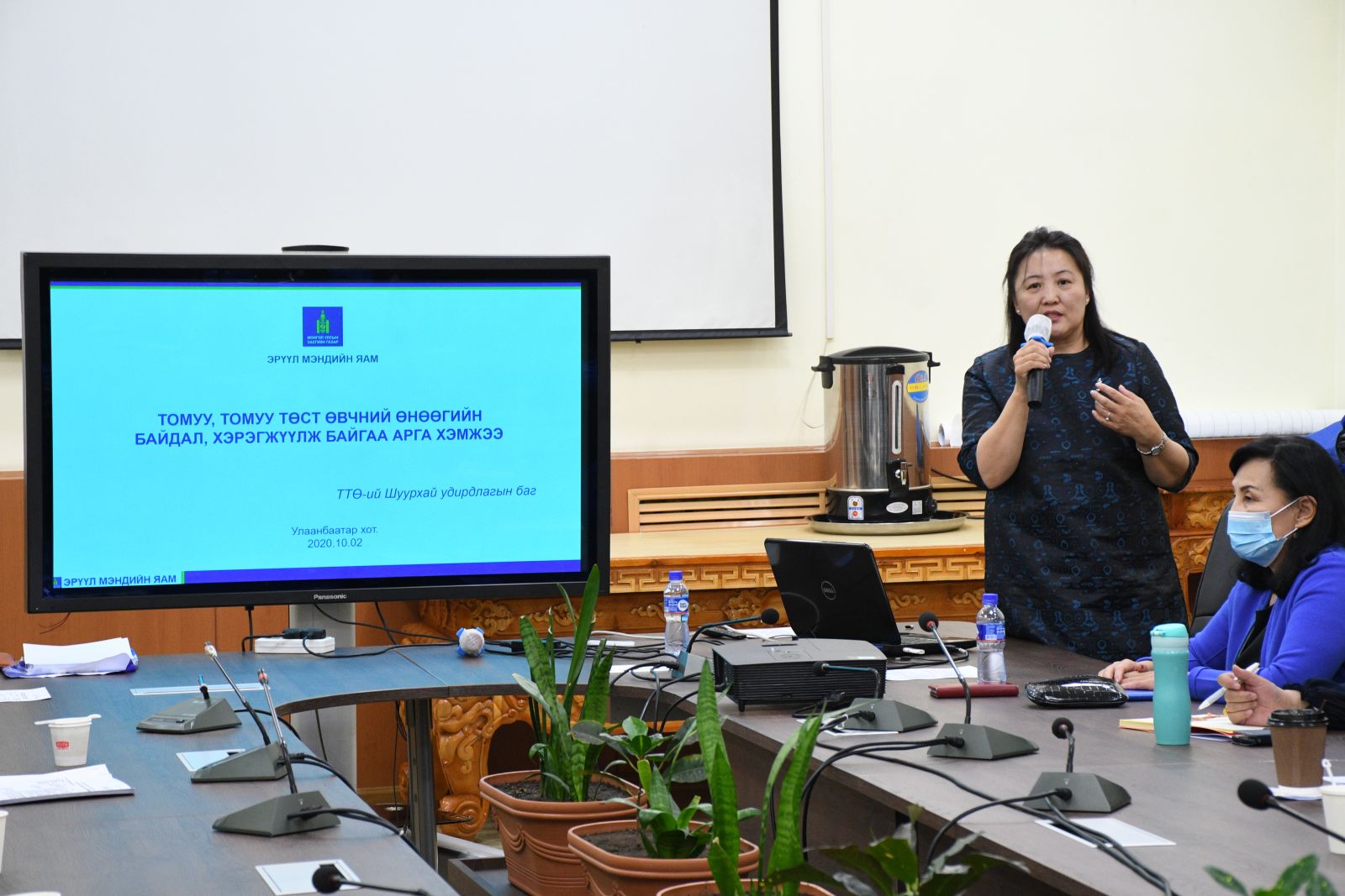 Сургалтанд ЭМЯ-ны Уламжлалт, анагаах ухааны хэлтсийн дарга С.Жаргалсайхан “Томуу, томуу төст өвчний үеийн хариу арга хэмжээ, эрүүл мэндийн тусламж, үйлчилгээний төлөвлөлт”-ийн талаар мэдээлэл хийж арга зүйгээр хангасан.