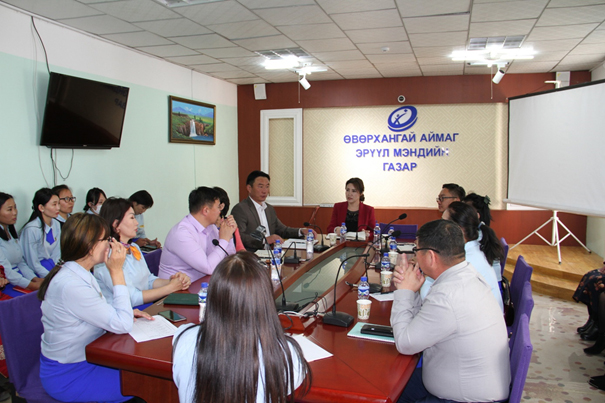 Эрүүл мэндийн дэд сайд Ш.Анхмаа Өвөрхангай аймагт ажиллалаа. Аймгийн эрүүл мэндийн удирдлага, мэргэжилтнүүд болон БОЭТ-ийн удирдлагуудтай уулзалт хийлээ. Уулзалтаар эрүүл мэндийн салбарын шинэчлэл, бодлого төлөвлөлт, эрүүл мэндийн даатгалын шинэчлэлийн талаар мэдээлэл хийж аймгийн эрүүл мэндийн өнөөгийн байдал, тулгамдсан асуудлуудтай танилцаж газар дээр нь шийдвэрлэж мөн Эрүүл мэндийг дэмжих төв, 50 ортой хүүхдийн эмнэлгийн барилгын явцтай танилцаж ажлыг эрчимжүүлэх үүрэг өглөө. Хүн амын эрүүл мэндийг хамгаалах үйлсэд олон жил үр бүтээлтэй ажилласан эмнэлгийн ажилчдад