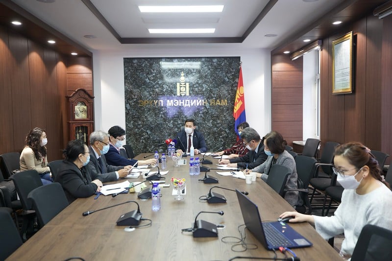 Өнөөдрийн уулзалтаар ШУА-ын гишүүн, академич П.Нямдаваа , АШУ-ны доктор. З.Адьяасүрэн, АУ-ны доктор, тархвар судлалын зэрэгтэй эмч. М.Алтанхүү, АУ-ны доктор, дэд профессор, Г.Сүрэнханд, ЭМЯ-ны дэргэдэх ХӨТС-ын салбар зөвлөлийн дарга нартай Эрүүл мэндийн сайд Т.Мөнхсайхан, ЭМЯ-ны ТНБД Я.Амаржаргал, ХӨСҮТ-ийн тандалт судалгааны албаны дарга н.Амбасэлмаа нар тандалт судалгааны явц, хариу арга хэмжээний талаар хуралдлаа.