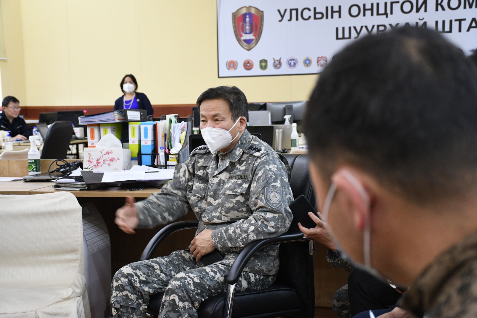 Хуралд Батлан хамгаалахын дэд сайд Б.Баярмагнай, Улсын Онцгой комиссын Шуурхай штабын дарга, хурандаа Б.Ууганбаяр, Тагнуулын ерөнхий газрын хэлтсийн дарга, хурандаа О.Адъяа, ОБЕГ-ын Гал түймрийн улсын хяналтын хэлтсийн дарга, хурандаа Г.Баян-Эрдэнэ, ЦЕГ-ын Нийтийн хэв журам хамгаалах НХЖГ-ын дарга, цагдаагийн хурандаа Р.Эрдэнэбат, МХЕГ-ын Хөдөлмөрийн хяналтын хэлтсийн дарга Г.Эрдэнэтөгс, ЭМЯ-ны Олон нийттэй харилцах, тандалт шуурхай удирдлагын хэлтсийн мэргэжилтэн С.Жаргалсайхан, ЭМЯ-ны Эмнэлгийн тусламжийн газрын мэргэжилтэн Б.Долгорсүрэн, Нийслэлийн Засаг даргын тамгийн газрын хэрэгжүүлэгч агентлаг Нийслэлийн Аялал жуулчлалын газрын хамтын ажиллагаа хариуцсан мэргэжилтэн Д.Ганболд, Үйлчилгээний байгууллага хариуцсан мэргэжилтэн С.Туул, Шуурхай штабын Ажиллагааны багийн гишүүн, цагдаагийн хошууч Л.Батгэрэл нар оролцож, тусгаарлан ажиглах байрны асуудлаар ярилцлаа.