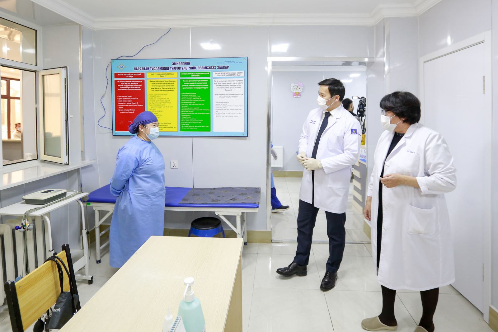 Эрүүл мэндийн сайд Т.Мөнхсайхан хатуу хөл хорионы үед эмнэлгүүдийн бэлэн байдал болон эмнэлгийн тусламж, үйлчилгээний хүртээмжийг иргэддээ үзүүлж буй нөхцөл байдлыг шалгаж өнөөдөр Сүхбаатар болон Чингэлтэй дүүргийн нэгдсэн эмнэлгүүдэд ажиллалаа. Эрүүл мэндийн сайд дүүргүүдэд ажиллах үеэрээ өгсөн үүрэг чиглэлийн биелэлт, халдварын үед тоног төхөөрөмжийн ашиглалт, эмч, ажилтнуудын аюулгүй байдлыг хангаж ажиллаж байгаа зэрэгтэй танилцсан юм.