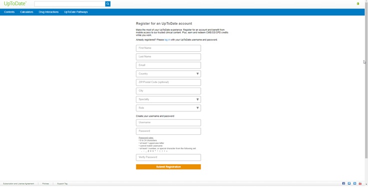- uptodate.com хаягаар орж Register товчийг дарснаар бүртгэлийн хэсэгт нэвтэрнэ;