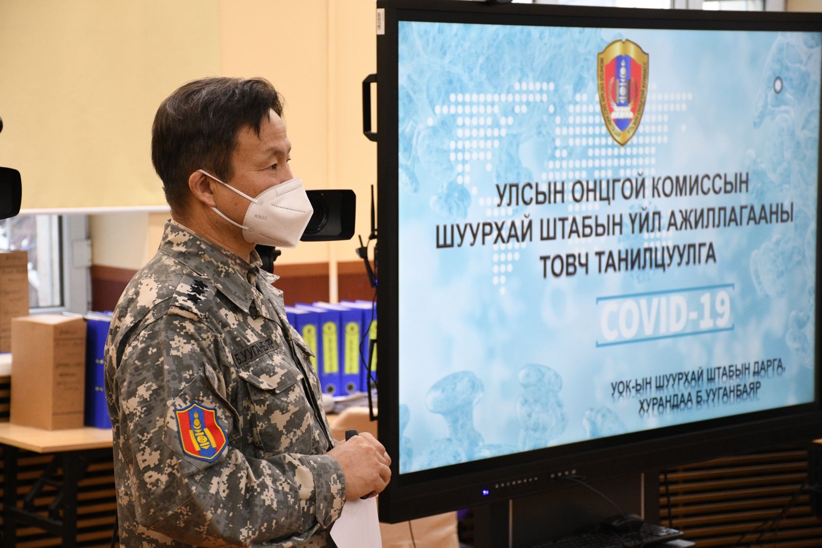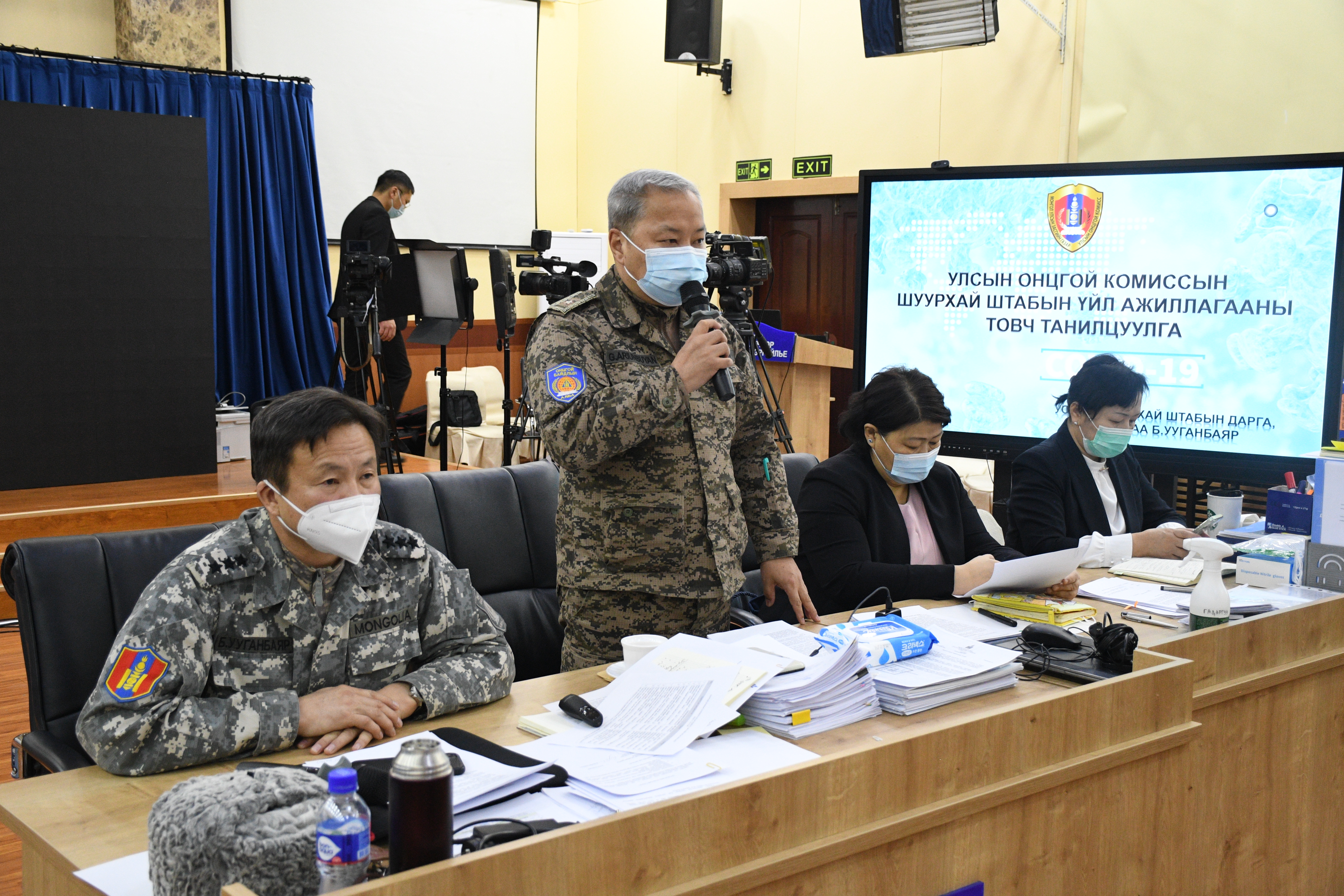 Улсын Онцгой Комиссын орлогч дарга, ОБЕГ-ын дарга, бригадын генерал Г.Арвинбуян өнөөдөр 2020 оны 12 дугаар сарын 30-ны өдөр Улсын онцгой комиссын Шуурхай штабын үйл ажиллагаатай танилцаж, үүрэг чиглэл өгөв. Хуралд Монгол Улсын Шадар сайдын ахлах зөвлөх Л.Саянаа, Шуурхай штабын дарга, хурандаа Б.Ууганбаяр, ЭМЯ-ны Төрийн нарийн бичгийн дарга, Шуурхай штабын ерөнхий менежер Я.Амаржаргал болон шуурхай штабын бие бүрэлдэхүүн оролцов.Улсын онцгой комиссын Шуурхай штабын үйл ажиллагаатай танилцлаа