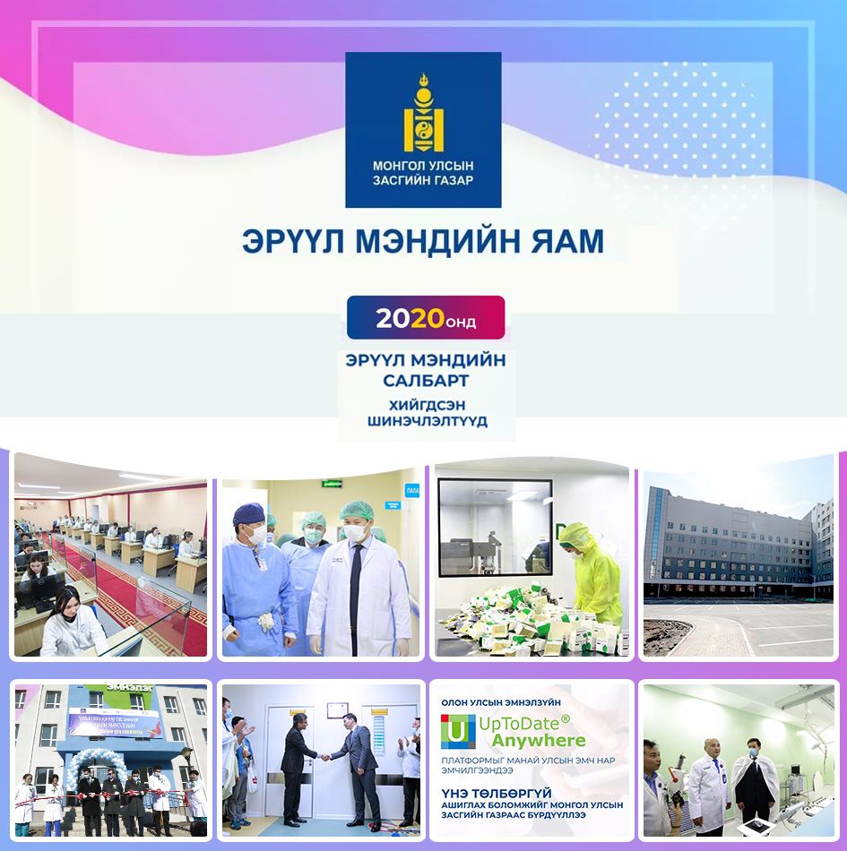 2020 онд Эрүүл мэндийн салбар шинэ төрлийн Коронавирустэй нүүр тулж, хариу арга хэмжээ авах, учирч болох эрсдэлийг хохирол багатай даван туулахын төлөө өндөржүүлсэн бэлэн байдалд ажиллалаа. Үүний зэрэгцээ Монгол Улсын Засгийн Газар, ЭМЯ-аас эрүүл мэндийн салбарын суурь асуудлуудыг шийдвэрлэх тогтолцооны шинэчлэл хийх хууль эрх зүйн орчныг бүрдүүлж, хэрэгжүүлэх ажлыг эхлүүлсэн жил байлаа. Эрүүл мэндийн салбарын, ялангуяа эрүүл мэндийн тусламж, үйлчилгээний санхүүжилтийн тогтолцоог сууриар нь өөрчлөх дараах алхмуудыг богино хугацаанд хийж хэрэгжүүлжээ. Үүнд: