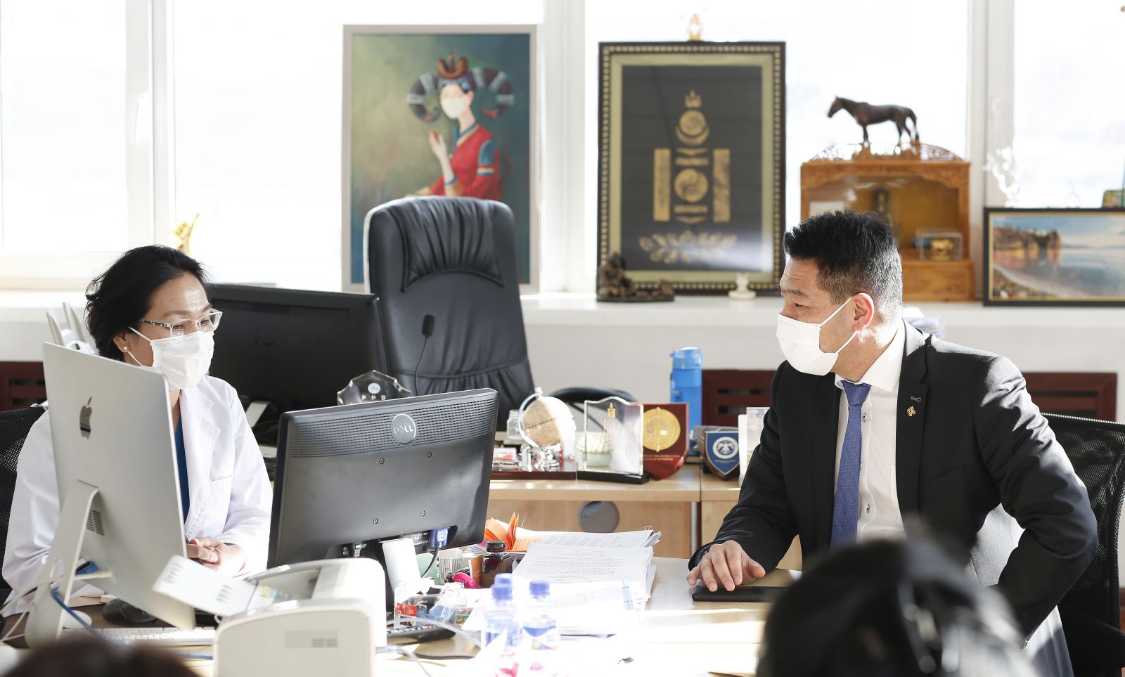 Эрүүл мэндийн сайд С.Энхболд ХӨСҮТ-ийн удирдлагууд болон ажилтан албан хаагчидтай уулзаж, үйл ажиллагаатай нь танилцлаа. Уулзалтын эхэнд сайд С.Энхболд Цагаан сарын үеэр хөл хорионы дэглэмийг чангатгаж, Бүх нийтийн бэлэн байдлын зэрэгт шилжүүлэх саналыг Улсын онцгой комисс дэмжсэн, өрх бүрээс нэг хүнийг шинжилгээнд хамруулахаар төлөвлөж байгаа зэргийг танилцууллаа. Мөн цар тахалтай нэг жилийн хугацаанд хамгийн их ачаалал авч ажиллаж байгаа тус төвийн эмч, сувилагч, ажиллагсдаар бахархаж байгаагаа илэрхийлсэн юм.
