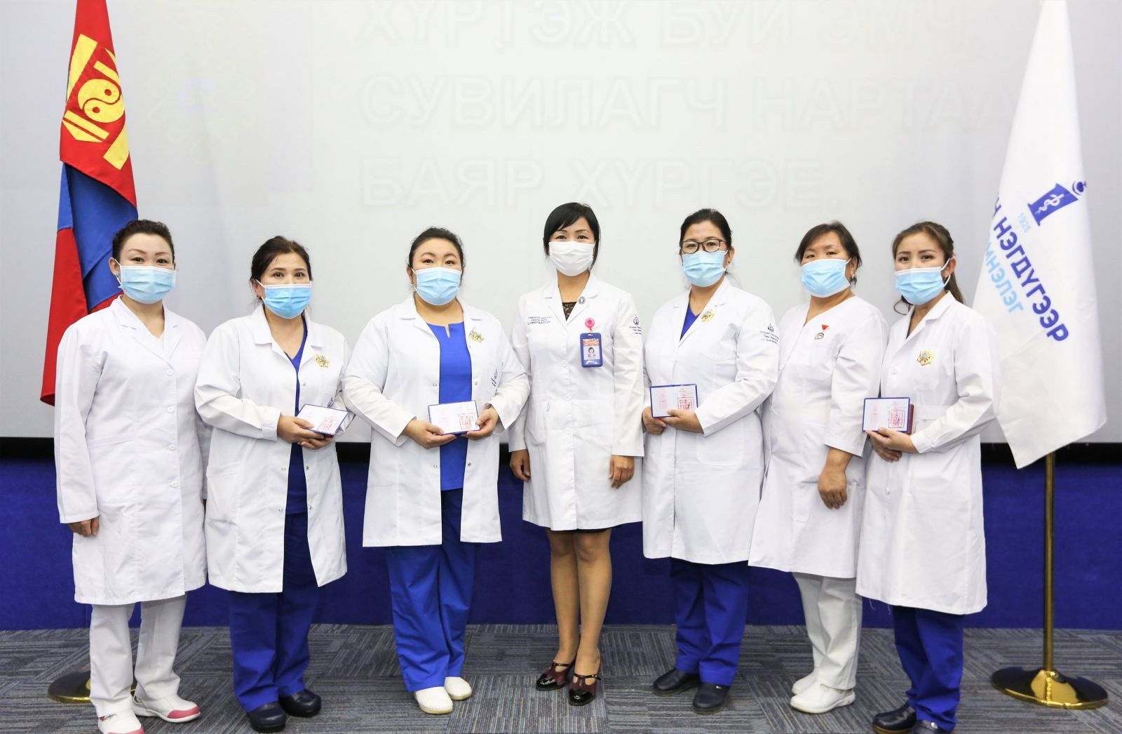 “Алтан гадас” одонгоор УНТЭ-ийн Мэдээгүйжүүлэг, хагалгааны нэгдсэн тасгийн ахлах сувилагч Б. Гэрэлтуяа, А.Циенпилжээ, сувилагч Т.Алма, М.Амарсанаа нар шагнагдсан бол Нүд судлалын тасгийн ахмад ажилтан, сувилагч С.Дуламсүрэн “Хөдөлмөрийн хүндэт” медалиар шагнагдаж төрдөө үнэлүүллээ. Хөдөлмөрийн хүндэт медалиар Төлөвлөлт, үйл ажиллагаа эрхэлсэн дэд захирал Б.Түвшинтөр, Захиргаа, хүний нөөцийн албаны дарга П. Анхтуяа, Уушги, харшил судлалын төвийн ахлах сувилагч Г.Амаржаргал, Зүрхний төвийн зүрх судасны мэс заслын эмч Б.Булган, Чих хамар хоолойн тасгийн ахмад сувилагч С.Оюунханд, Зүрхний төвийн дарга Д.Эрдэмбилэг нар шагнагдсан юм.