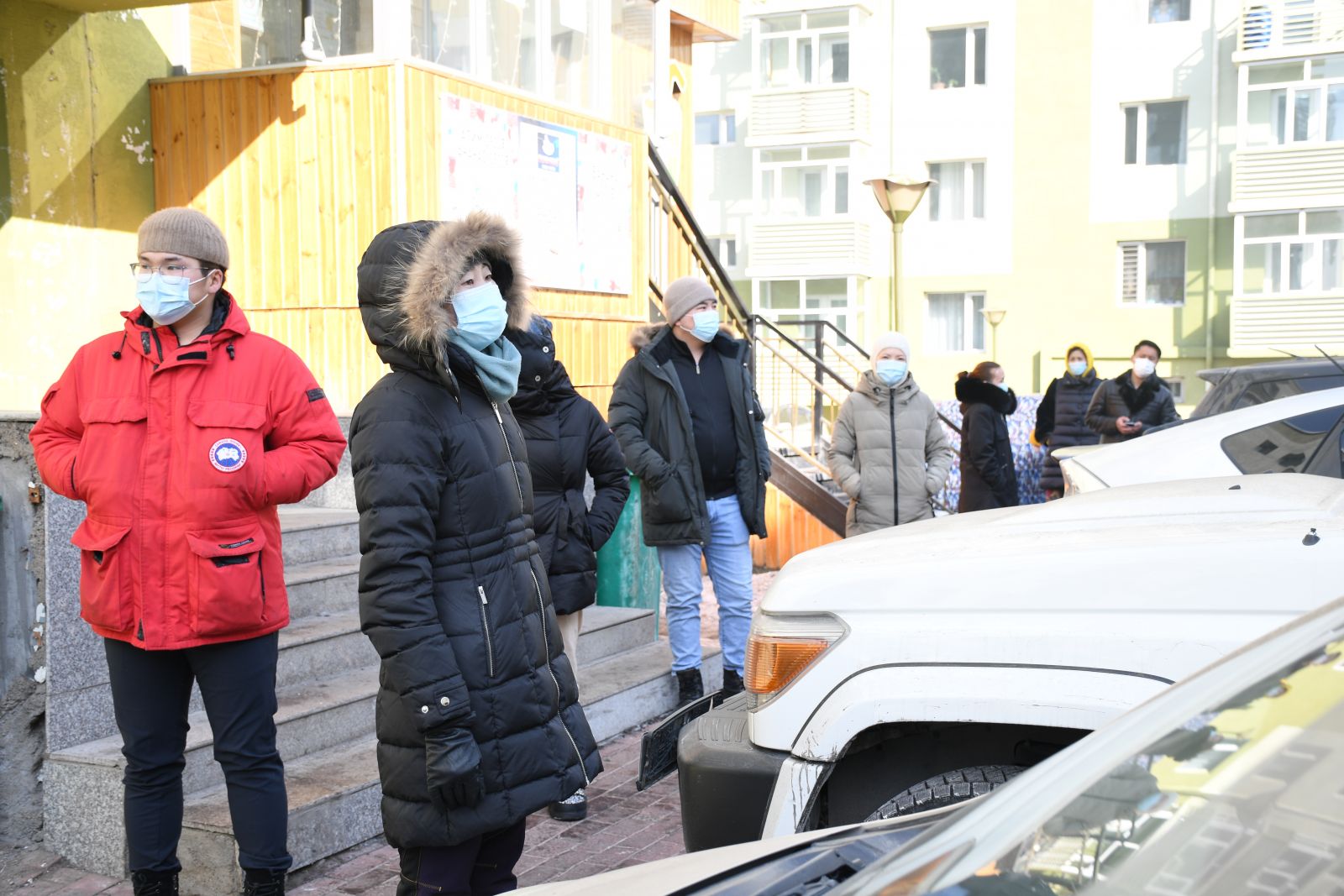 Нэг өрх-Нэг хаалга шинжилгээнд сайн дураараа санаачлагатай, идвэхтэй оролцож буй иргэн бүрт талархаж, Хан-Уул дүүргийн явуулын цэгт шинжилгээ өгч байсан иргэдийн төлөөлөлд Эрүүл мэндийн сайд С.Энхболд баярлаж буйгаа илэрхийллээ.
