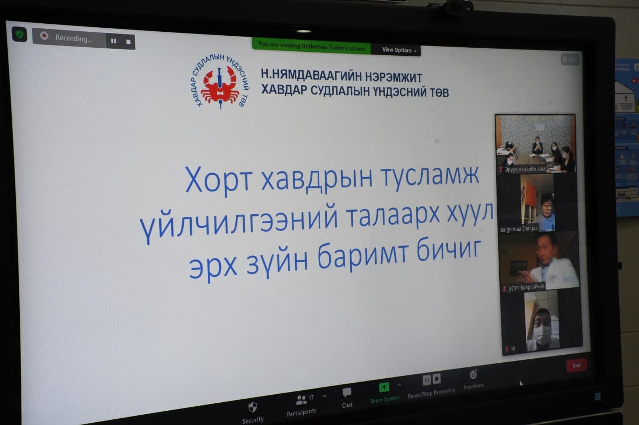 Монгол Улсын Засгийн газрын 2020-2024 оны үйл ажиллагааны хөтөлбөрийг хэрэгжүүлэх арга хэмжээний төлөвлөгөөг батлах тухай Засгийн газрын 203 дугаар тогтоолын "Хавдрын эсрэг" арга хэмжээний төлөвлөгөөний төслийн танилцуулга, төлөвлөгөөний төслийн санал солилцох цахим хурал зохион байгуулагдлаа.Цахим хуралд Эрүүл мэндийн дэд сайд М.Баттүвшин, Халдварт бус өвчний хяналт, сэргийлэлтийн хэлтсийн дарга Б.Бямбатогтох, Хавдар судлалын үндэсний төвийн захирал Н.Эрдэнэхүү, дэд захирал Л.Баярсайхан, Хавдар судлалын үндэсний төвийн бүртгэл тандалт эрт илрүүлгийн албаны дарга Т.Ундармаа, ДЭМБ-ын Халдварт бус өвчин, осол гэмтэл хариуцсан мэргэжилтэн С.Болормаа зэрэг ажлын хэсгийн бүрэлдэхүүн оролцлоо.