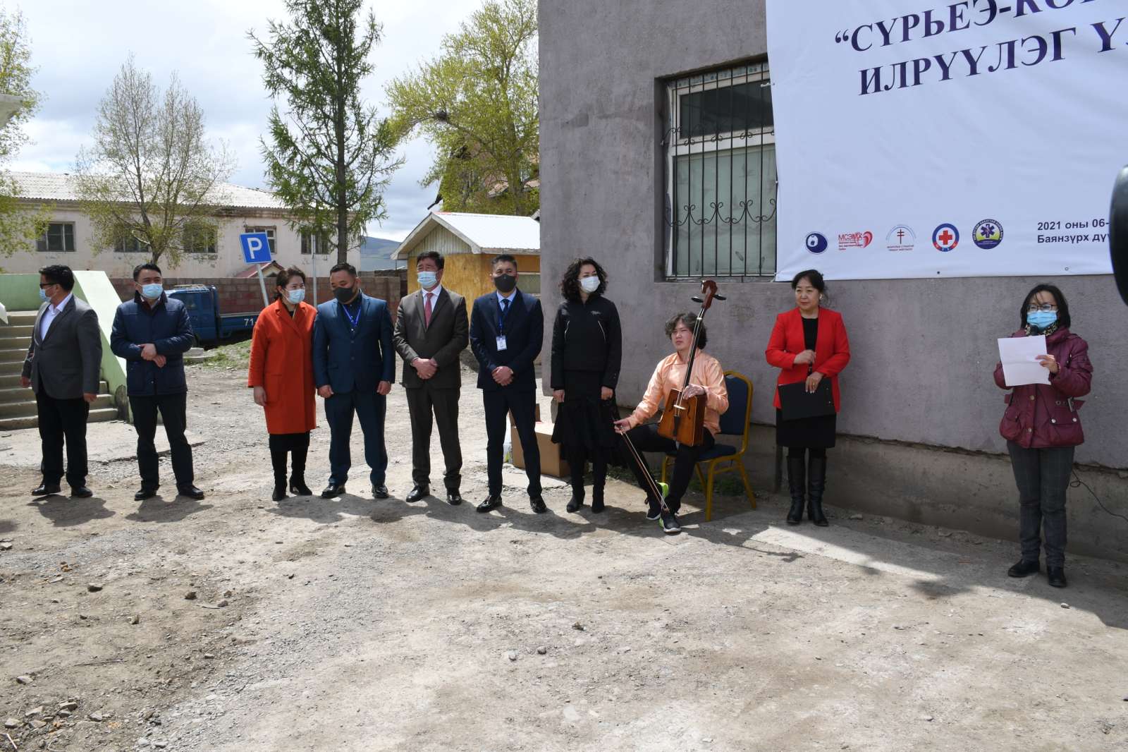 ‘’Сүрьеэ- ковид-19 халдвар’’ илрүүлэг үзлэгийн нээлтийн үйл ажиллагаанд Эрүүл мэндийн сайдын зөвлөх О.Батбаяр, Нийтийн эрүүл мэндийн тусламжийн бодлого, хэрэгжилтийг зохицуулах газрын дарга Л.Энхсайхан, НЭМГ-ын дарга Б.Бямбадорж, Глобаль сангийн төслийн зохицуулагч Н.Цогзолмаа, МӨАУМХ-ны гүйцэтгэх захирал Ш,Хажидмаа нар оролцлоо. Түүнчлэн Глобаль сангийн дэмжлэгтэй сүрьеэгийн төсөлд Монголын өрхийн анагаах ухааны эмч, мэргэжилтнүүдийн холбоо, Монголын сүрьеэтэй тэмцэх нийгэмлэг, Сумын эмч мэргэжилтнүүдийн холбоо, Монголын улаан загалмайн нийгэмлэг зэрэг байгууллага хамтран ажиллаж байна. Тус үйл ажиллагааны зорилго нь сүрьеэгээр өвчлөх эрсдэлт бүлгийн хүн амд сүрьеэ, коронавируст (КОВИД-19)-ыг илрүүлэг, хугацаа алдалгүй оношилж, эмчилгээнд хамруулснаар хүндрэл нас баралтаас сэргийлэх юм.