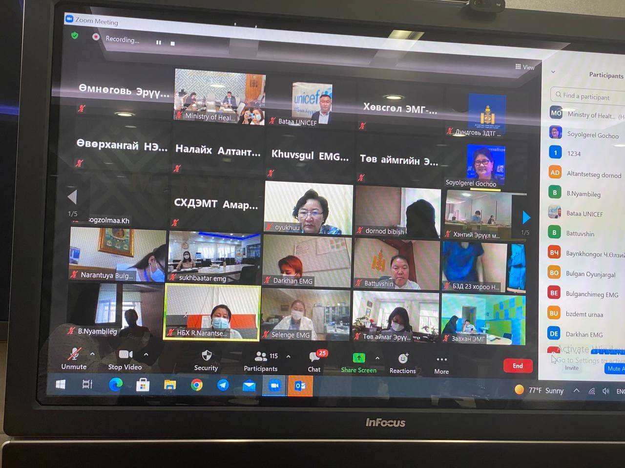 “Эрүүл анхан шатны тусламж, үйлчилгээг бэхжүүлэхэд олон нийтийн оролцоо” сэдэвт Эрүүл мэндийн яам, НҮБ-ын Хүүхдийн сан, аймаг, нийслэлийн Засаг даргын тамгын газар, Эрүүл мэндийн газар, Эрүүл мэндийн байгууллагуудын удирдах, ажилтан, эмнэлгийн мэргэжилтнүүд оролцсон цахим зөвлөгөөн 2021 оны 7 дугаар сарын 8,9-ний өдрүүдэд амжилттай болж өндөрлөлөө.