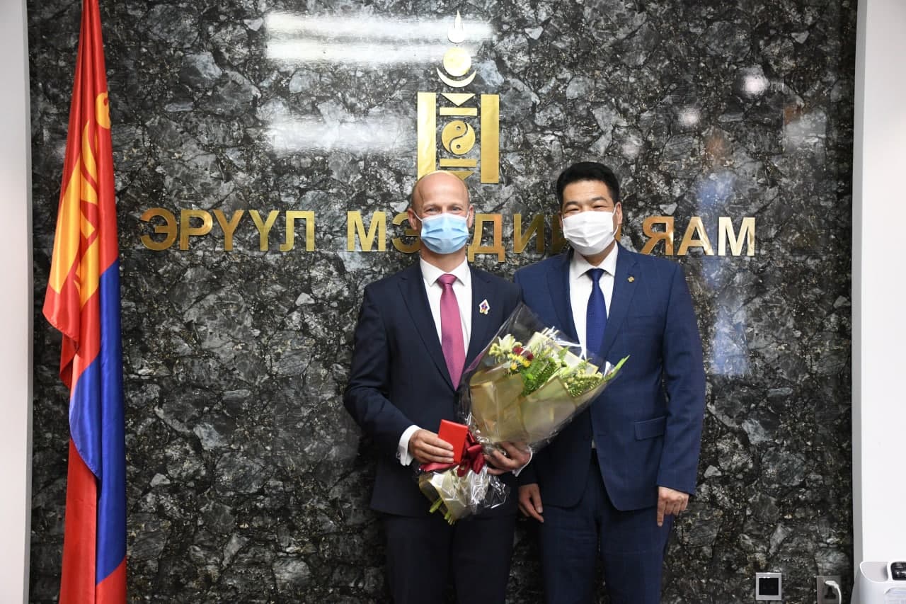 Эрүүл мэндийн сайд С.Энхболд Нэгдсэн Үндэстний Байгууллагын Хүүхдийн сангийн Монгол Улс дахь Суурин төлөөлөгч ноён Алекс Хайкенс-ыг бүрэн эрхийн хугацаа нь дуусгавар болж байгаатай холбогдуулан хүлээн авч уулзав.