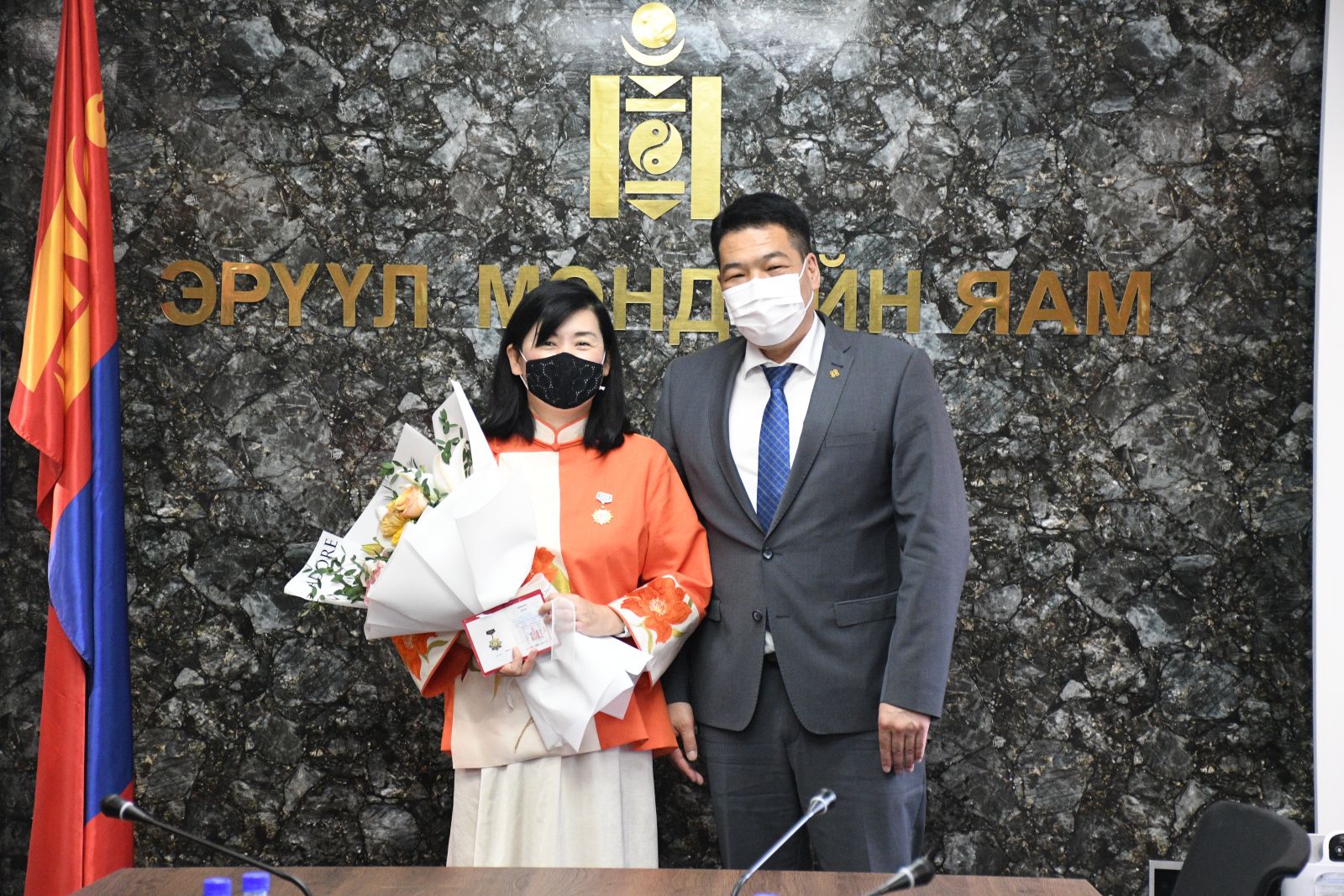Хатагтай Каори Ишикавад Монгол Улсад ажиллах хугацаандаа монгол хүний эрүүл мэндийн хамгаалах үйлсэд оруулсан хувь нэмрийг нь үнэлж Эрүүл мэндийн яамны “Хүндэт тэмдэг” медалиар шагнасныг Эрүүл мэндийн сайд С. Энхболд гардуулан өгч, түүний цаашдын ажилд өндөр амжилт хүсэв.