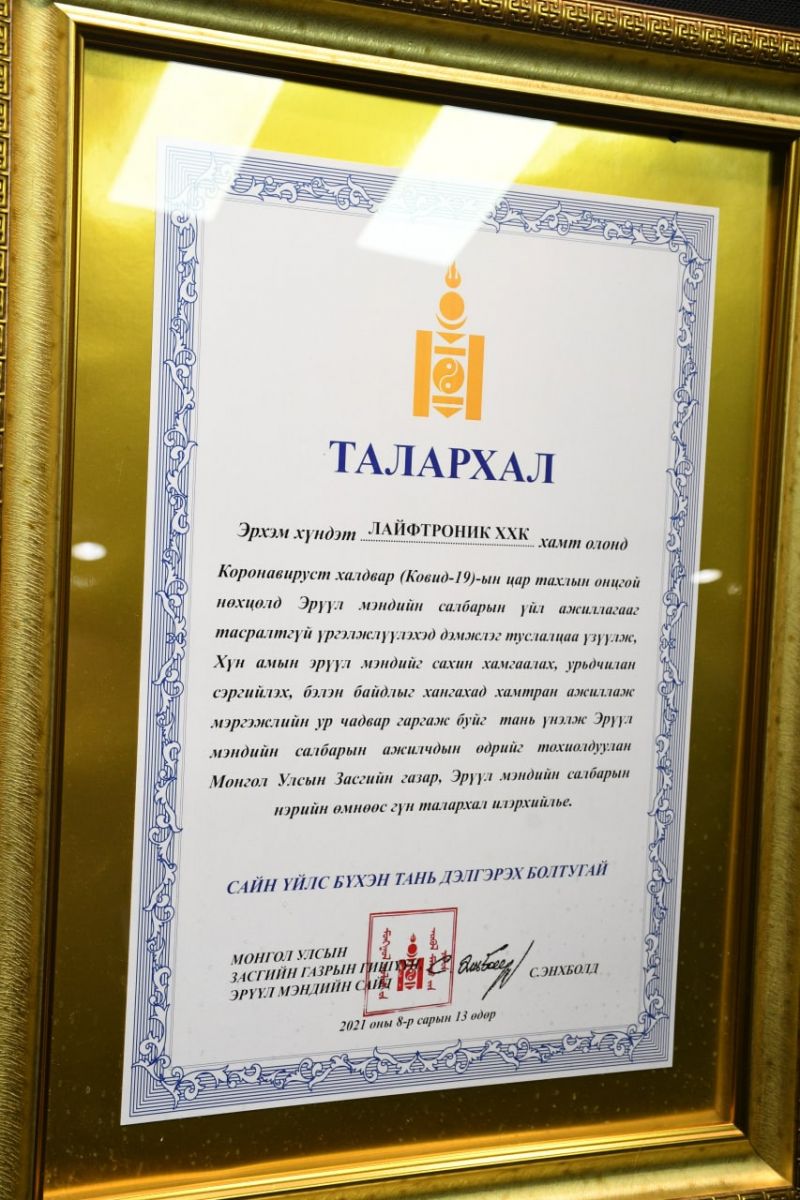 Ковид-19 өвчин дотоодод бүртгэгдсэнээс хойш нэн шаардлагатай, эм, тариа зэргийг тасралтгүй хангасан Монгол эм импекс концерн болон Эрүүл мэндийн салбарын үйл ажиллагааг тасралтгүй үргэлжлэх боломжоор хангаж ажилласан олон аж ахуйн нэгж, хувь хүмүүс байна. Эдгээрийн төлөөлөл болгож 2021 оны 8 дугаар сарын 13 өдөр бусу Эрүүл мэндийн салбарын ажилчдын өдрийг тохиолдуулан Лайфтроник ХХК, Монгол эм импекс концерн ХХК, Сулин хайрхан ХХК, Пролианс ХХК-д Эрүүл мэндийн яамны удирдлага талархал илэрхийллээ.