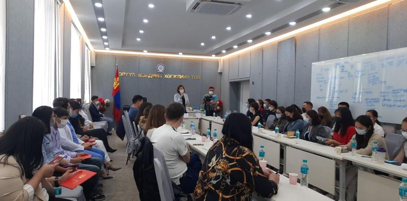 Сургалтаар коронавируст халдвар /КОВИД-19/ -ын үед гадаад улсаас ирсэн иргэнийг тусгаарлах байранд тусгаарлан ажиглах үйл ажиллагаанд дайчлагдан ажиллах резидент эмч нарт ажил үүргээ гүйцэтгэхтэй холбоотой хууль тогтоомж танилцуулах, тусгаарлах байранд халдвараас сэргийлэх дэглэм мөрдүүлэх талаар мэдлэг олгох зорилгоор Эрүүл мэндийн хөгжлийн төвийн захирал Б.Нарантуяа, Мэргэжлийн хяналтын ерөнхий газрын ахлах байцаагч Г.Батсүрэн, Цагдаагийн ерөнхий газрын хурандаа О.Чингэсболд, Улсын онцгой комиссын шуурхай штабын А.Саранцэцэг нар оролцож резидент эмч нарт мэдээлэл өглөө.