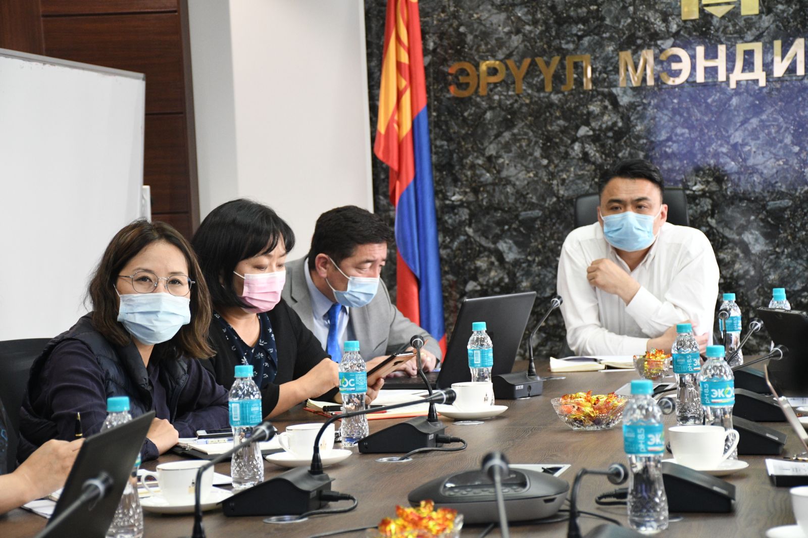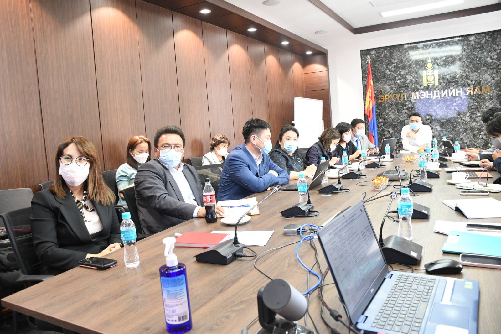 Коронавируст халдвар (КОВИД-19)-ын тархалт огцом нэмэгдсэн нөхцөл байдалтай холбогдуулан, анхан шатны эрүүл мэндийн байгууллагын эмнэлгийн тусламжийн бэлэн байдал, хариу арга хэмжээ, хүний нөөц, эм эмнэлгийн хэрэгслийн нөөц, гэрээр эмчлэн хянах үйл ажиллагааг сайжруулах, тулгамдсан асуудлыг шийдвэрлэхийн тулд холбогдох эрүүл мэндийн байгууллагууд КОВИД-19-ын хариу арга хэмжээний төлөвлөлтөд санал солилцов. Хуралд Эрүүл мэндийн сайдын зөвлөх О.Батбаяр,Эрүүл мэндийн яамны ТЗУГ-ын дарга П.Эрхэмбаяр, ЭТБХЗГ-ын дарга Б.Буянтогтох, ЛШТХ-ийн дарга С.Жаргалсайхан, АШТХ-ын дарга С.Энхцолмон, НЭМХАХХӨХСХ-ийн дарга Д.Баярболд, НЭМГ-ын дарга Б.Бямбадорж, МӨАУМХ-ны дэд захирал Ш.Хажидмаа, ЭМХТ-ийн дарга Б.Нарантуяа, ХУД-ийн Тэрмистий Өрхийн эрүүл мэндийн төвийн дарга Ж.Болормаа болон бусад албаны хүмүүс оролцлоо.