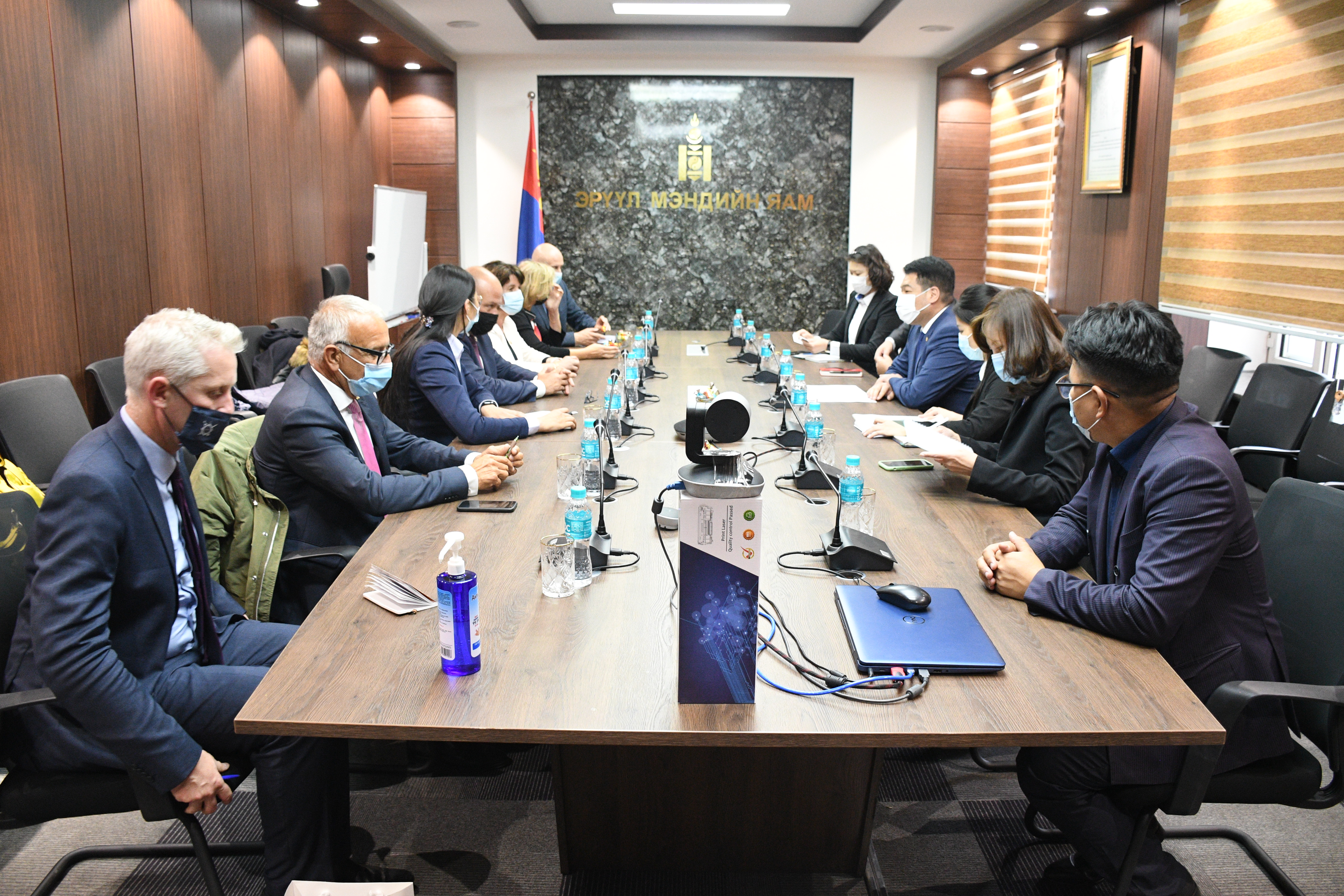 Үүний дараагаар ноён Филипп Мүэй хүлээн авч уулзаж байгаад Эрүүл мэндийн сайдад талархал илэрхийлж, Монгол Улсын Засгийн газраас КОВИД-19 халдварын цар тахалтай тэмцэх, сэргийлэх чиглэлээр авч хэрэгжүүлж байгаа арга хэмжээ, үйл ажиллагаанууд үр дүнтэй байгааг онцлоод цаашид хоёр улсын эрүүл мэндийн салбар дахь уламжлалт харилцаа, хамтын ажиллагааг дэмжиж ажиллахаа мэдэгдлээ.