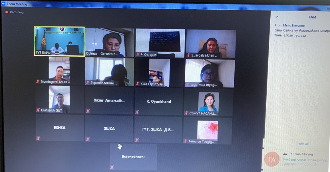 “Геронтологи, гериатрийн салбарын хөгжлийн чиг хандлага” цахим хэлэлцүүлэг 2021 оны 09 дүгээр сарын 16-ны өдөр амжилттай зохион байгууллаа. Тус хэлэлцүүлэгт Эрүүл мэндийн яам, Геронтологийн үндэсний төв, Сэтгэцийн эрүүл мэндийн үндэсний төв, Анагаахын шинжлэх ухааны үндэсний их сургууль, Монголын ахмадын холбоо, Насжилт судлал, настны эмгэг судлалын нийгэмлэг, Олон улсын байгууллагын төлөөллүүд оролцлоо. Хэлэлцүүлэгт “Геронтологи, гериатрийн салбарын өнөөгийн байдал”, “Геронтологи, гериатрийн салбарын хөгжил олон улсад”, “Геронтологи, гериатрийн салбарын хөгжлийн чиг хандлага” сэдвүүр танилцуулга хийж, хэлцэмж, саналыг нэгтгэн холбогдох байгууллагуудтай хамтран ажиллах, цаашдын салбарын хөгжлийн баримт бичигт тусгуулан ажиллахаар шийдвэрлэлээ.