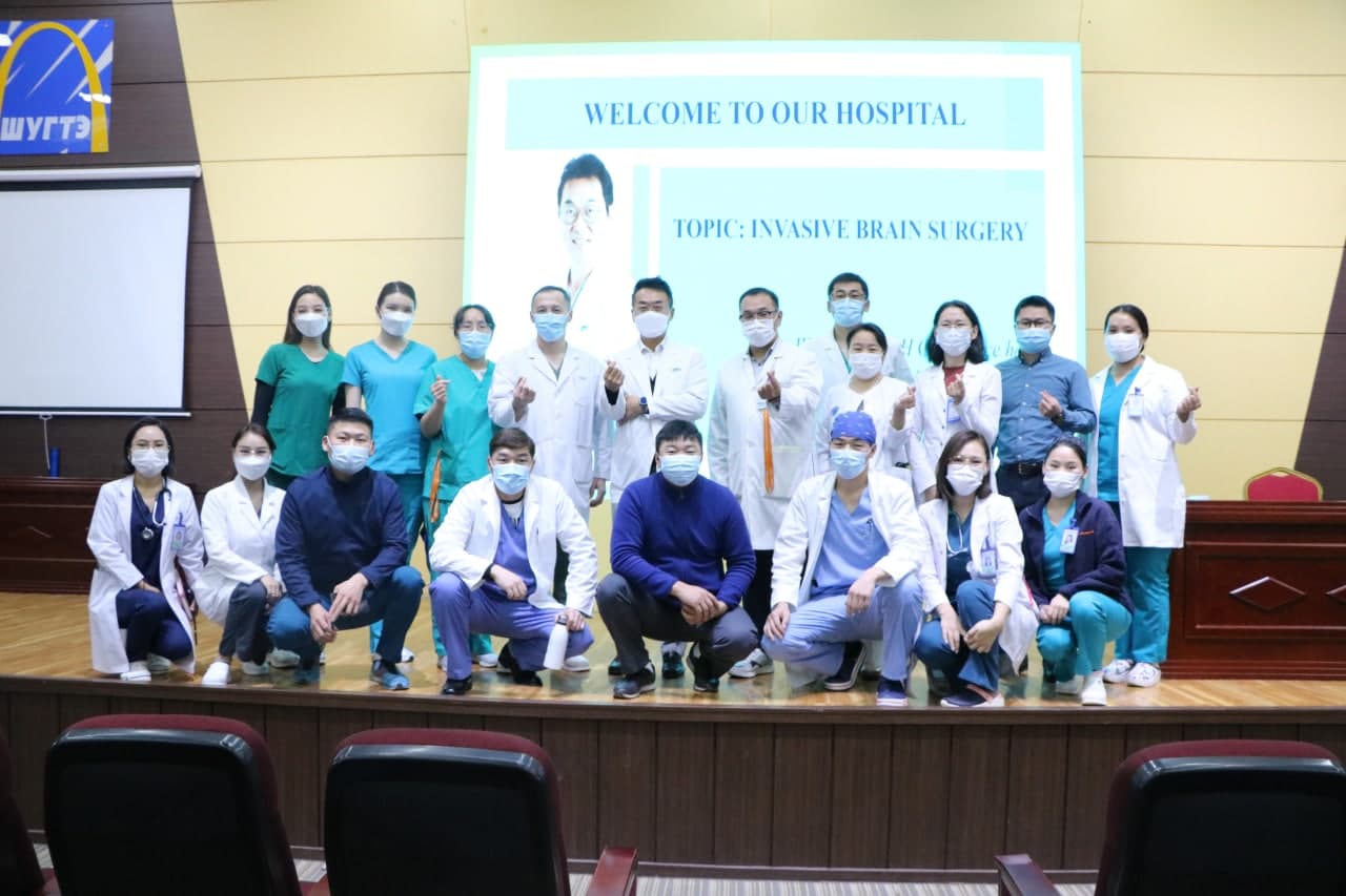 Тус эмнэлэгт 2021 оны 11 сарын 02-ны өдөр БНСУ-ын Сунчонхян Их Сургуулийн Сөүл эмнэлгийн профессор Чо Сун Жин Мэдрэлийн мэс заслын чиглэлээр “Minimal Invasive Brain surgery”, “Moya-Moya disease surgical treatment and doppler control” сэдвүүдээр лекц уншин, тус эмнэлгийн мэдрэлийн мэс заслын тасгийн эмч нарын зөвлөгөөнд оролцож, мэс засал эмчилгээ шаардлагатай өвчтнүүдэд хамтарсан үзлэг хийж, эмчилгээ, оношилгооны талаар заавар зөвлөгөө өглөө.