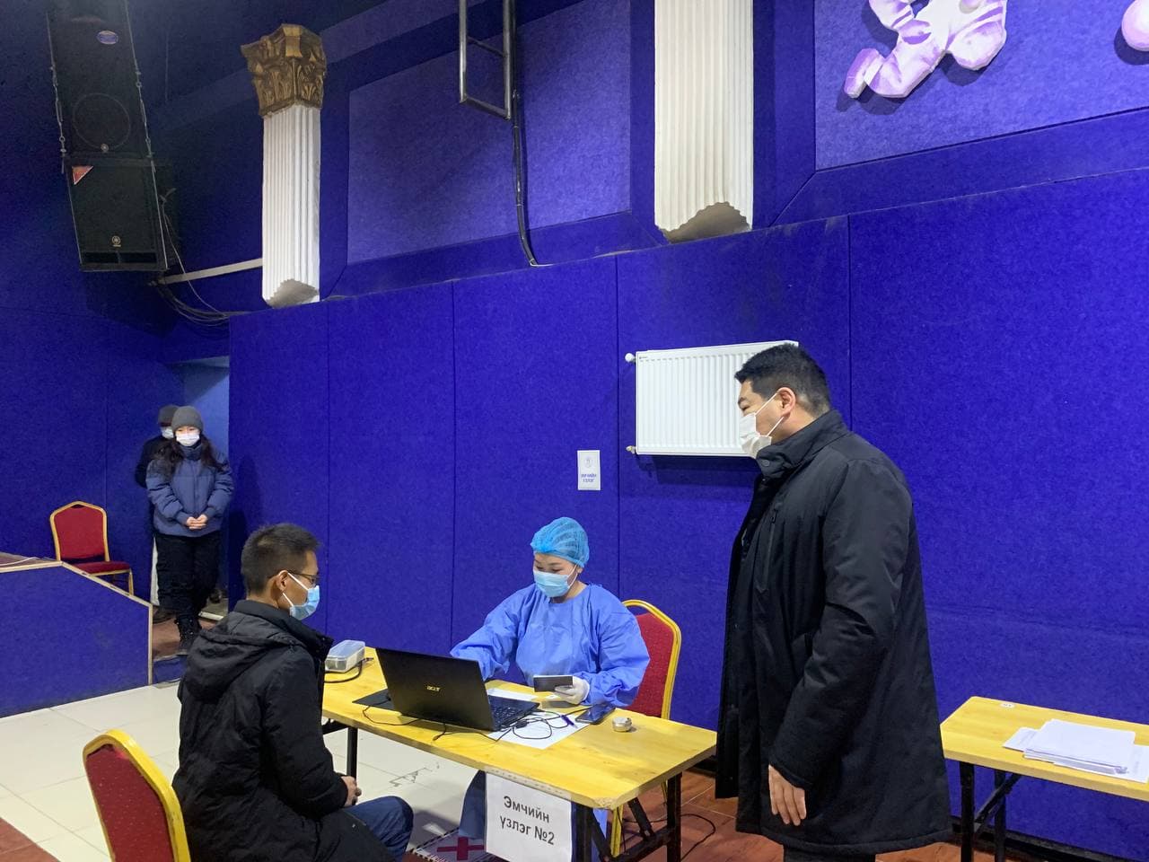Эрүүл мэндийн сайд С.Энхболд Хан-Уул дүүргийн ажилчны соёлын ордонд дархлаа сэргээх нэмэлт тунгийн явцтай танилцлаа. Мөн түүнчлэн Эрүүл мэндийн сайд С.Энхболд МҮХАҮТ-д болж буй үзэсгэлэнд оролцлоо. Тус үзэсгэлэнд Хан-Уул дүүргийн эрүүл мэндийн төвөөс 9 хүний бүрэлдэхүүнтэй дархлаажуулалтын явуулын цэг ажиллаж, вакцины III-р тундаа хамрагдах боломжоор хангаж байв.