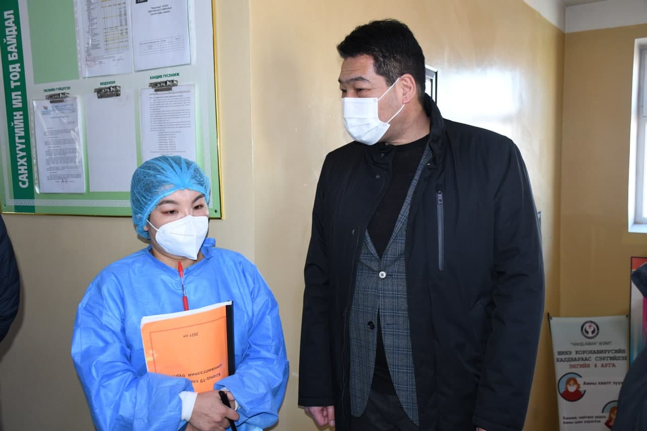 Эрүүл мэндийн сайд С.Энхболд Хан-Уул дүүргийн 6-р хорооны Чанд-Авиа Өрхийн Эрүүл мэндийн төвд ажиллаж тэнд ажиллаж буй эмч сувилагчийн санал хүсэлтийг сонслоо. Өнөөдөр тус эмнэлэгт 1 эмч 2 сувилагчийн бүрэлдэхүүнтэй 3 хүн ажиллаж байв.