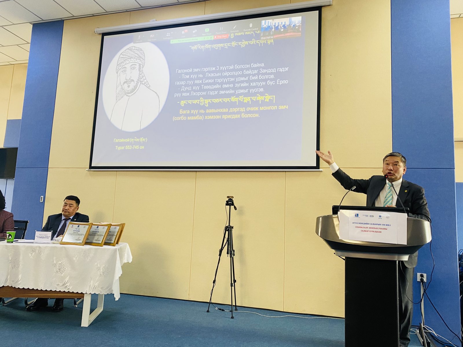 гэсэн 4 хэсгээр зохион байгуулж байна. Хуралд илтгэлээ хэлэлцүүлсэн төлөөллөөс дурьдвал ЭМЯ, ШУА, НЭМГ, Нийслэл, Дүүргийн болон хувийн хэвшлийн эмнэлгүүд, хөдөө орон нутгийн УАУ төвүүд, их дээд сургуулиуд, мэргэжлийн нийгэмлэг холбоод, гадаад орноос Японы Токио Ариаке ИС, ӨМҮИС, ОХУ-ын БИС, БНХАУ-ын Тянжины ХАУИС зэрэг байгууллагаас төлөөлөл оролцлоо. Зочин илтгэгчээр ШУ-ны гавьяат зүтгэлтэн, академич, АШУ-ны доктор, профессор Б.Давгацэрэн "Тогтолцооны нэгтгэмэл уламжлалт анагаах ухааны онолын үндэслэлийн чиглэлээр оролцож байна. "Уламжлалт анагаах ухааны салбар" цахим хуралд тавигдах илтгэлүүд, эрдэм судлалын ажлын үр дүнг нэгтгэн үзвэл Монгол Улсад орчин цагийн анагаах ухаан үүсч хөгжсөний 100 жилийн түүхэн хугацаанд гаргасан ололт амжилтууд нь Монголын уламжлалт анагаахын салбарын эмч мэргэд, эрдэмтэдтэй салшгүй холбоотой бөгөөд өрнө, дорны анагаах ухааны эрдэм шинжилгээ, судалгааны ажлын ололт, үр дүнг олон нийтэд таниулах, туршлага солилцох, хамтын ажиллагаанд дэмжлэг үзүүлэх зорилготой юм. Уламжлалт анагаах ухааны эрдэм мэдлэг эрт цагт нэвтэрснийг нотлох баримт эх сурвалжуудад олонтоо бичигдсэн байдаг.