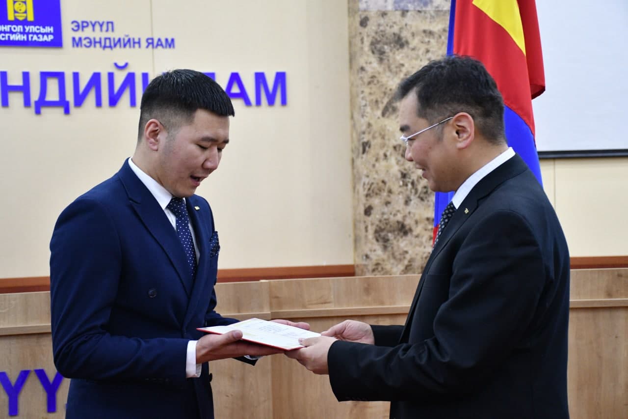 Тулгар төрийн 2230 жил, Их Монгол Улс байгуулагдсаны 815 жил, Үндэсний эрх чөлөө, тусгаар тогтнолоо сэргээн мандуулсны 110 жил, Эрүүл мэндийн алба, орчин цагийн анагаах ухаан үүсэж хөгжсөний түүхт 100 жилийн ойг тохиолдуулан хүн ардынхаа амь нас, эрүүл мэндийг сахин хамгаалах үйлсэд олон жил идэвх санаачилга үр бүтээлтэй ажиллан онцгой амжилт гаргаж, эх орныхоо хөгжил дэвшилд үнэтэй хувь нэмэр оруулсан эрүүл мэндийн салбарын зүтгэлтнүүдэд Эрүүл мэндийн сайд С.Энхболд төрийн дээд шагнал, одон, медаль гардуулав. Шагналыг Эрүүл мэндийн сайд С.Энхболд, ЭМЯ-ны Төрийн нарийн бичгийн дарга Ц.Эрдэмбилэг, ЭМЯ-ны ТЗУГ-ын дарга П.Эрхэмбаяр нар гардуулж хүндэтгэл үзүүллээ.