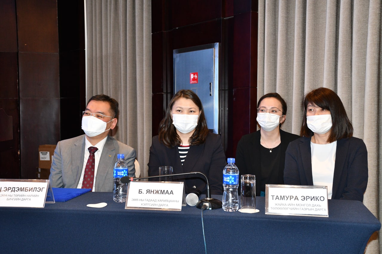 Уулзалтын үеэр Япон Улсын Засгийн газраас Монгол Улсын Засгийн газарт КОВИД-19 цар тахалтай тэмцэхэд дэмжлэг үзүүлэх зорилгоор 883 сая иений санхүүжилт бүхий “КОВИД-19 халдварт цар тахлын хямралыг арилгахад яаралтай тусламж үзүүлэх хөтөлбөр”-ийн хүрээнд олгож буй зөөврийн компьютерын дээжийг гардуулан өгөх ёслолын арга хэмжээг зохион байгуулав. Тус арга хэмжээнд Эрүүл мэндийн яамны Төрийн нарийн бичгийн дарга Ц.Эрдэмбилэг, ЖАЙКА-Японы Олон улсын хамтын ажиллагааны байгууллагын Монгол Улс дахь Төлөөлөгчийн газрын дарга хатагтай Тамура Эрико болон албаны бусад хүмүүс оролцлоо.