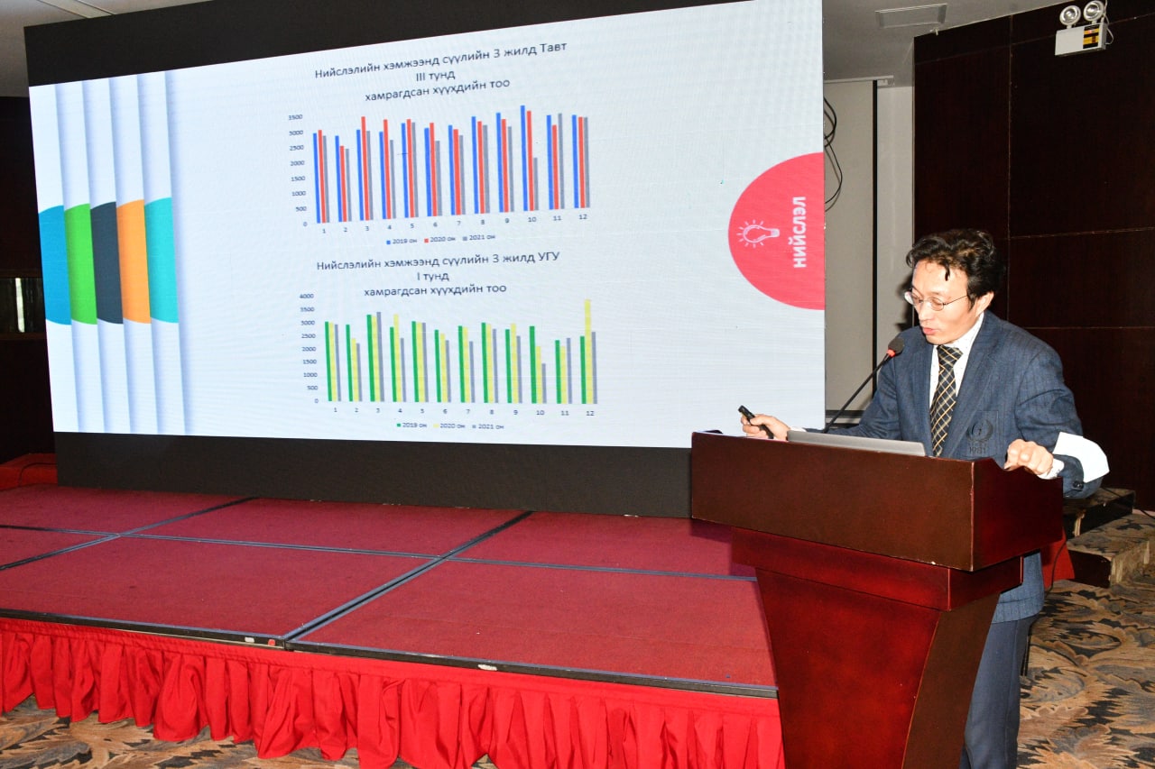 "Дархлаажуулалтын хөтөлбөрийн хэрэгжилт" зөвлөлдөх уулзалт 2022 оны 04-р сарын 06-ны өдөр зохион байгуулагдлаа. Тус зөвлөлдөх уулзалтад Нийгмийн эрүүл мэндийн талаарх төрөөс баримтлах бодлого, чиглэл, Халдварт өвчинтэй тэмцэх сэргийлэх үндэсний хөтөлбөр (2017-2021)–ийн хэрэгжилт цаашид хэрэгжүүлэх арга хэмжээний чиглэл, Дэлхий дахины дархлаажуулалтын хөтөлбөрийн бодлого чиглэл зэрэг 11 илтгэл хэлэлцүүлсэн. Зөвлөлдөх уулзалтанд ЭМЯ, ХӨСҮТ, НҮБ-ийн Хүүхдийн сан, ДЭМБ, НЭМГ, Аймгийн ЭМГ, Дүүргийн ЭМТ-ийн дарга нар, дархлаажуулалт хариуцсан мэргэжилтэн, хүйтэн хэлхээ хариуцсан бага эмч зэрэг 100 гаруй хүний бүрэлдэхүүн оролцов. Цаашид товлолын дархлаажуулалтын үйл ажиллагаагаа сайжруулах шаардлага тулгарч байна. Учир нь КОВИД-19 цар тахлын улмаас дархлаажуулалтын хамралт тодорхой хэмжээгээр буурсан үзүүлэлттэй байгаа учраас хамрагдалтыг нэмэгдүүлэх шаардлагатай. Коронавируст халдвар (КОВИД19)-ын вакциныг Засгийн газар, ЭМЯ, хандивлагч улс орнууд, олон улсын байгууллагын тусламжтайгаар Монгол улс 8,3 сая тун вакцины нөөцийг бүрдүүлж чадсан. Өнөөдрийн байдлаар нийт хүн амыг 5,5 сая тун вакцинаар дархлаажуулсан байна. Дархлаа сэргээх нэмэлт тунгийн хамрагдалт улсын хэмжээнд 53 хувьтай байна. Уулзалтаас гарах зөвлөмжийг хэлэлцэж, цаашдын төлөвлөлт, бодлого чиглэлийг ярилцсан "Дархлаажуулалтын хөтөлбөрийн хэрэгжилт" зөвлөлдөх уулзалтыг цаг үеэ олсон, өгөөжтэй хурал боллоо гэж оролцогчид сэтгэл хангалуун байв.