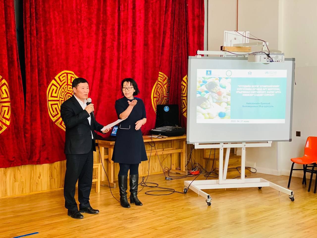 Энэ удаа СБД-ийн төрийн өмчит ерөнхий боловсролын 25 сургуулийн 1250 багш, эмч, нийгмийн ажилтанд хуулиар хүлээсэн үүргийнх нь дагуу хүүхдийн эсрэг хүчирхийллийг хэрхэн яаж танин мэдэж илрүүлэх, мэдээлэх, мөн сургуулийн хүүхдийг осол гэмтлээс сэргийлэх талаар эцэг, эх, асран хамгаалагч нарт болон хүүхдэд зориулсан интерактив модуль багцыг сурталчлан таниулах сургалтыг тус тус зохион байгуулж байна.
