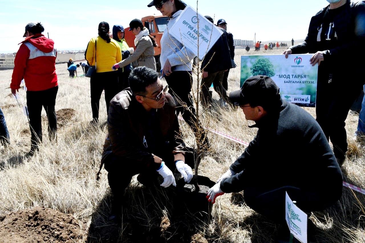 Монгол Улсын Ерөнхийлөгч У. Хүрэлсүх дэлхийн уур амьсгалын өөрчлөлтийн нөлөөллийг бууруулах, ой, усны нөөцийг хамгаалах, нэмэгдүүлэх, экологийн тэнцвэрт байдлыг хангах зорилгоор “Тэрбум мод” үндэсний хөдөлгөөнийг санаачлан эхлүүлсэн. Энэхүү санаачлагын хүрээнд Эрүүл мэндийн яам болон харьяа байгууллагуудын төлөөлөл өчигдөр Үндэсний цэцэрлэгт хүрээлэнд 500 мод, өнөөдөр Налайх дүүргийн "Цэцэрлэгт хүрээлэнд" 80 гаруй шинэс модыг тарьж суулгалаа. Өнөөдрийн арга хэмжээнд Эрүүл мэндийн сайд С.Энхболд, ЭМЯ-ны Төрийн нарийн бичгийн дарга Ц.Эрдэмбилэг, ТЗУГ-ын дарга П.Эрхэмбаяр болон газар хэлтсийн дарга нар, харьяа 17 байгууллагын төлөөлөл оролцлоо.