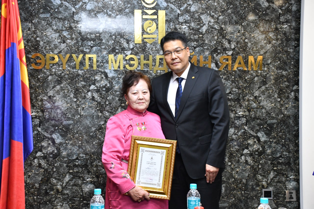 Тулгар төрийн 2231, Их Монгол Улс байгуулагдсаны 816, Үндэсний эрх чөлөө, тусгаар тогтнолоо сэргээн мандуулсны 111, Ардын хувьсгалын 100, 101 жилийн ойгоор төрийн дээд цол, одон, медалиар шагнагдсан эрүүл мэндийн салбарын зүтгэлтнүүдэд Эрүүл мэндийн сайд С.Энхболд болон ЭМЯ-ны удирдлагууд хүндэтгэл үзүүлж хүлээн авч уулзав.