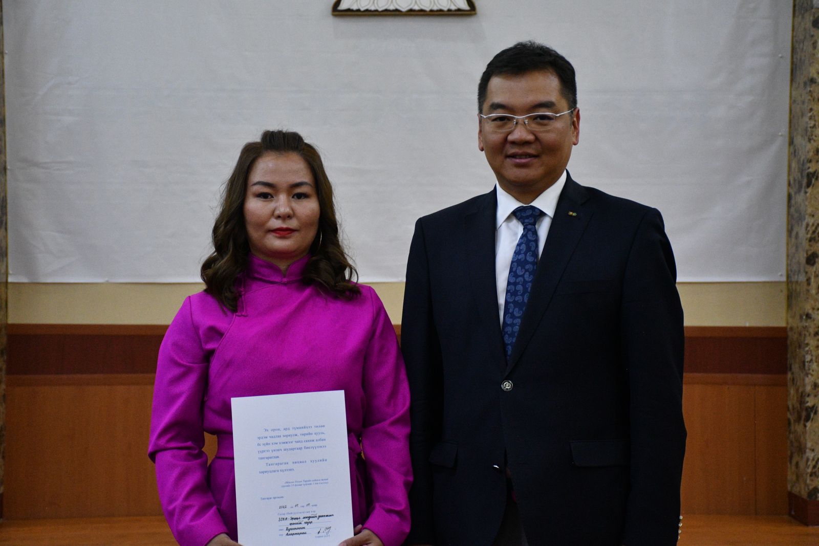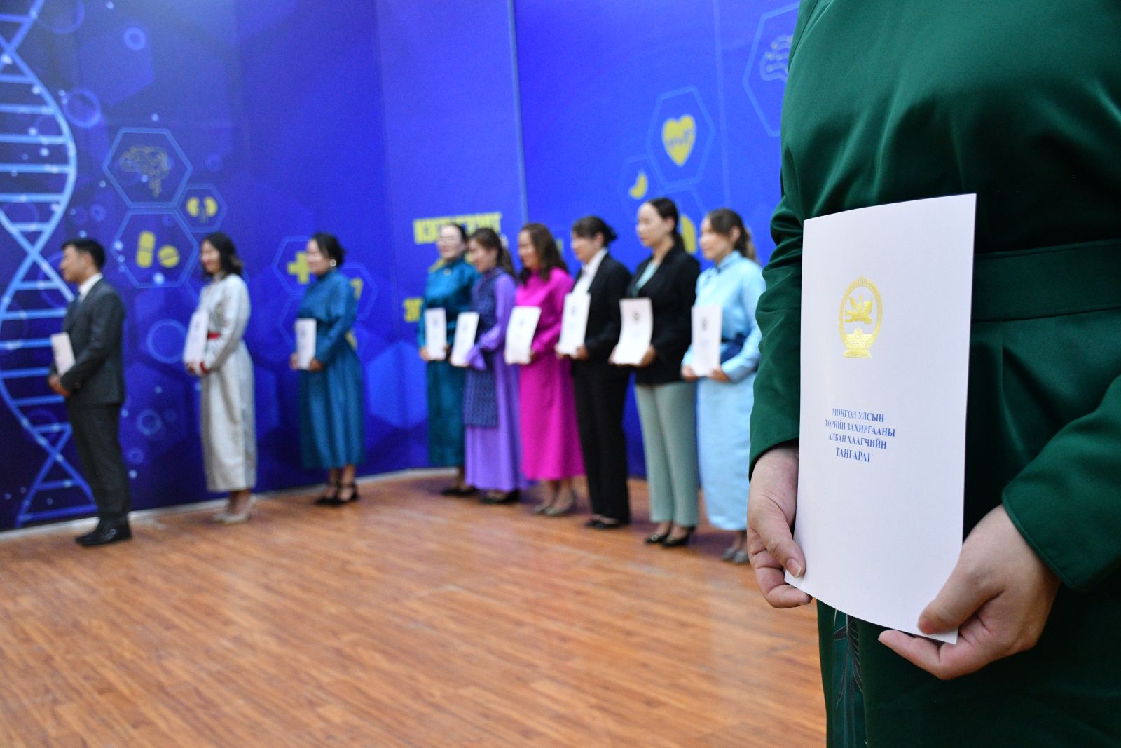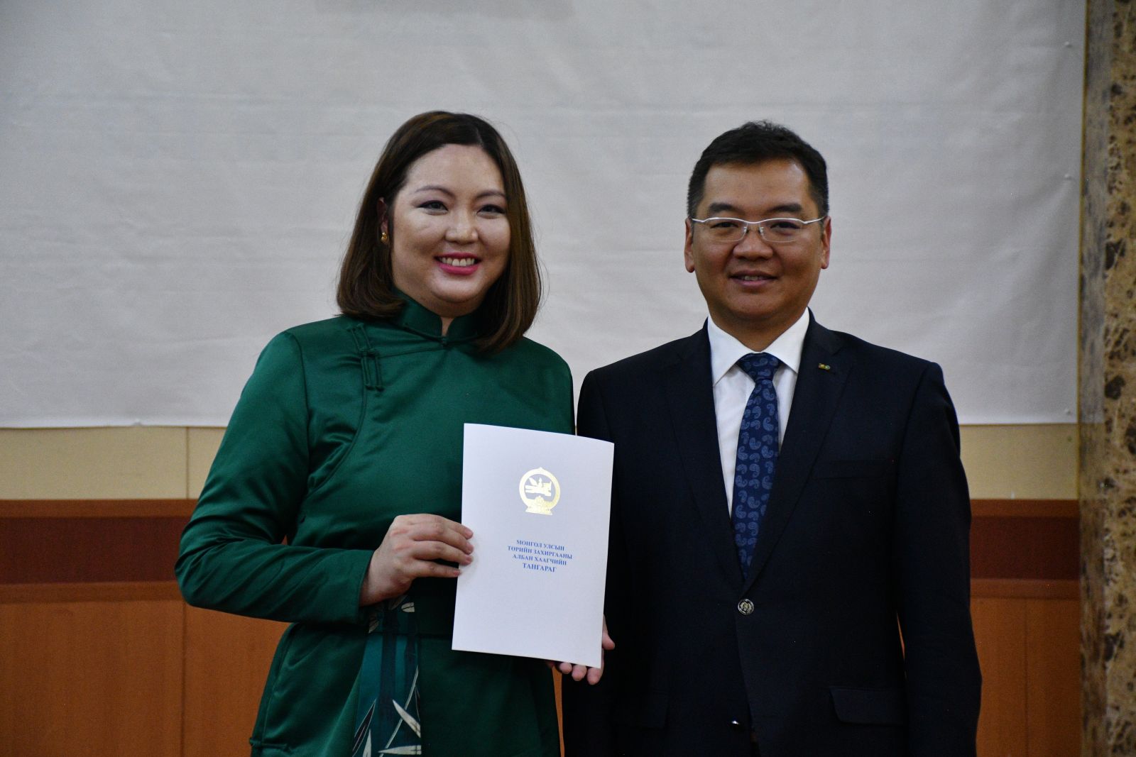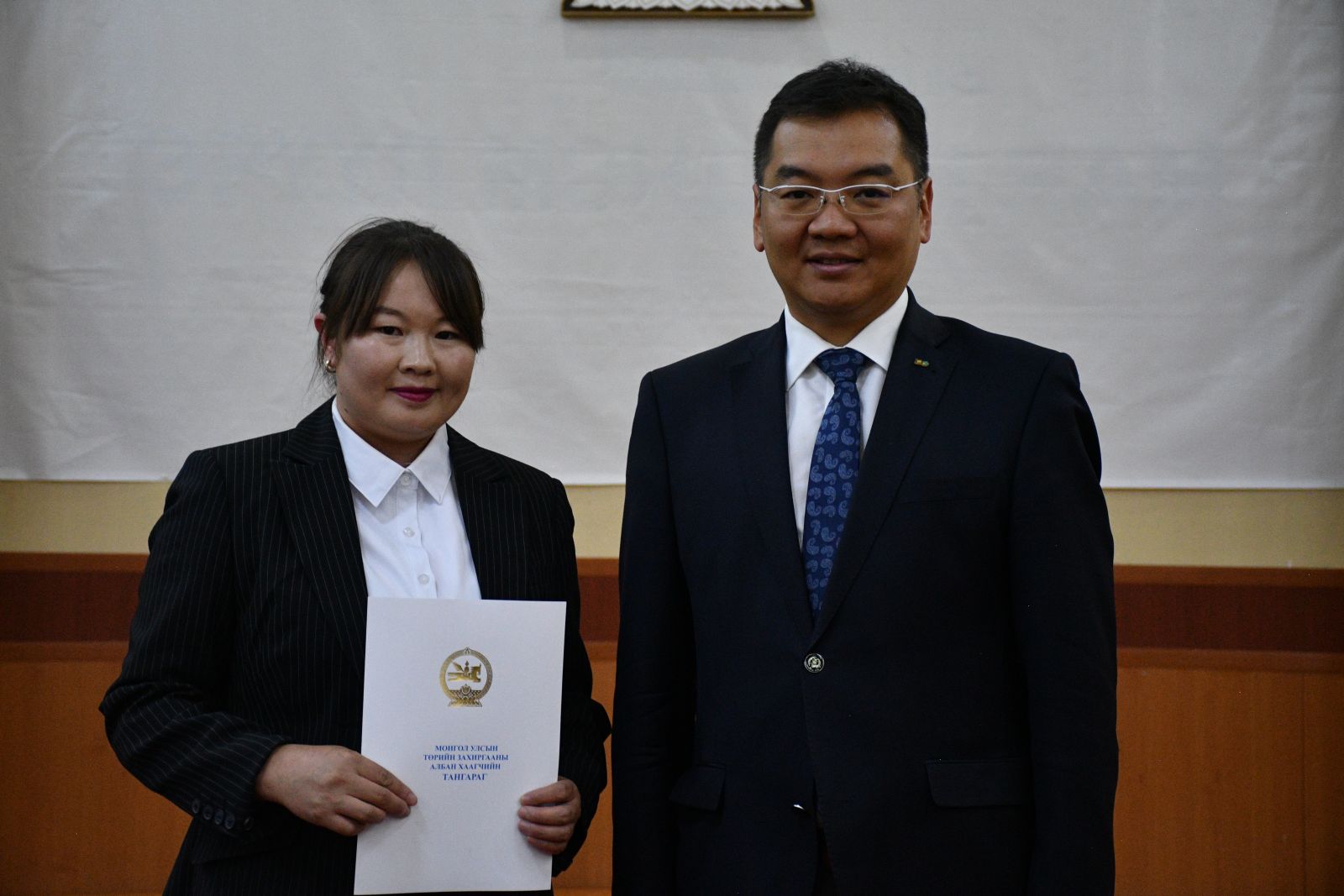 Монголын төрд зүтгэж байгаа 21 мянган төрийн захиргааны албан хаагчийн эгнээ өнөөдөр 22 төрийн жинхэнэ албан хаагчаар өргөжиж байна. Өргөсөн тангаргаа үл умартан, эх орон, ард түмнийхээ төлөө, хууль, ёс зүйн хэм хэмжээг мөрдөн, үнэнч шударгаар ажиллаж төрийн албаны нэр хүндийг ямагт өндөрт өргөж явахыг хүсье.
