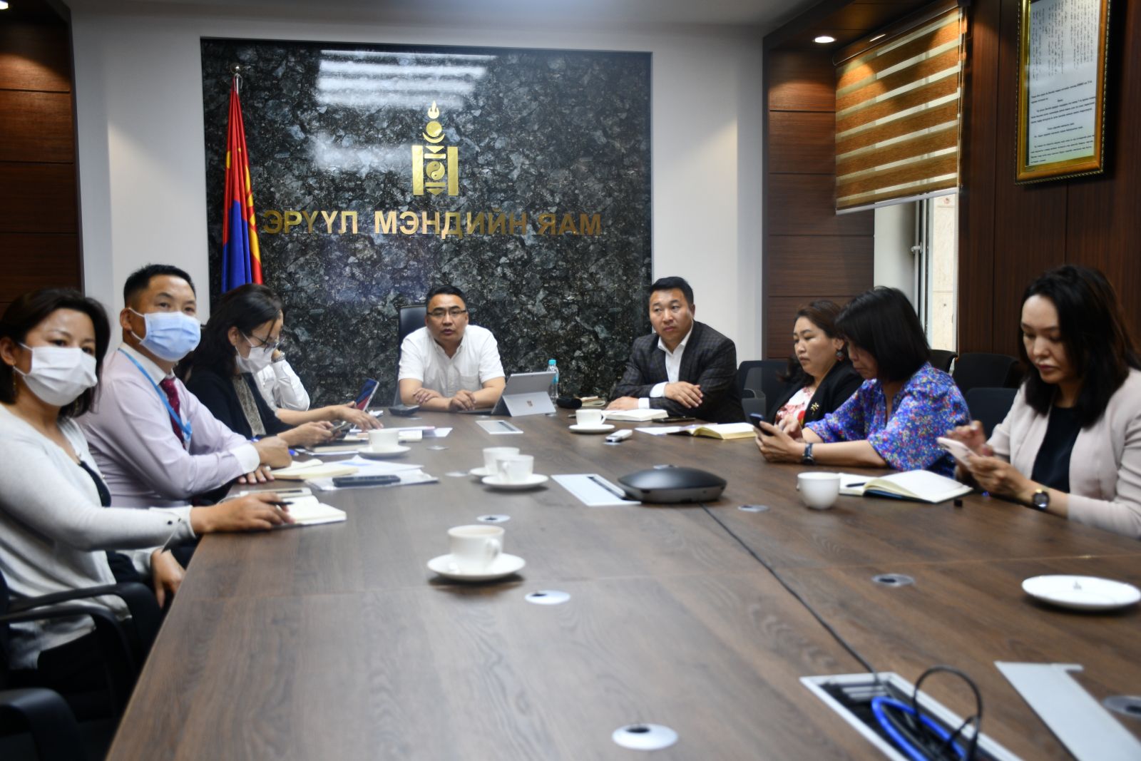 Өчигдөр Эрүүл мэндийн сайд С.Энхболд ЗГХА-Эрүүл мэндийн даатгалын ерөнхий газар, ЗГХА-Эм, эмнэлгийн хэрэгслийн хяналт зохицуулалтын газар, ЭМЯ-ны харьяа төрөлжсөн мэргэшлийн эмнэлэг, тусгай мэргэжлийн төв, Төмөр замын нэгдсэн эмнэлэг, Цэргийн төв эмнэлэг, Төрийн тусгай албан хаагчдын нэгдсэн эмнэлэг, АШУҮИС-ийн харьяа Монгол-Японы эмнэлгийн удирдлагуудтай ээлжит шуурхай цахим хурлыг хийж мөн хүний нөөц ба эм, эмнэлгийн хэрэгслийн нөөцөө бэлдэн ажиллах чиглэл өгсөн билээ.