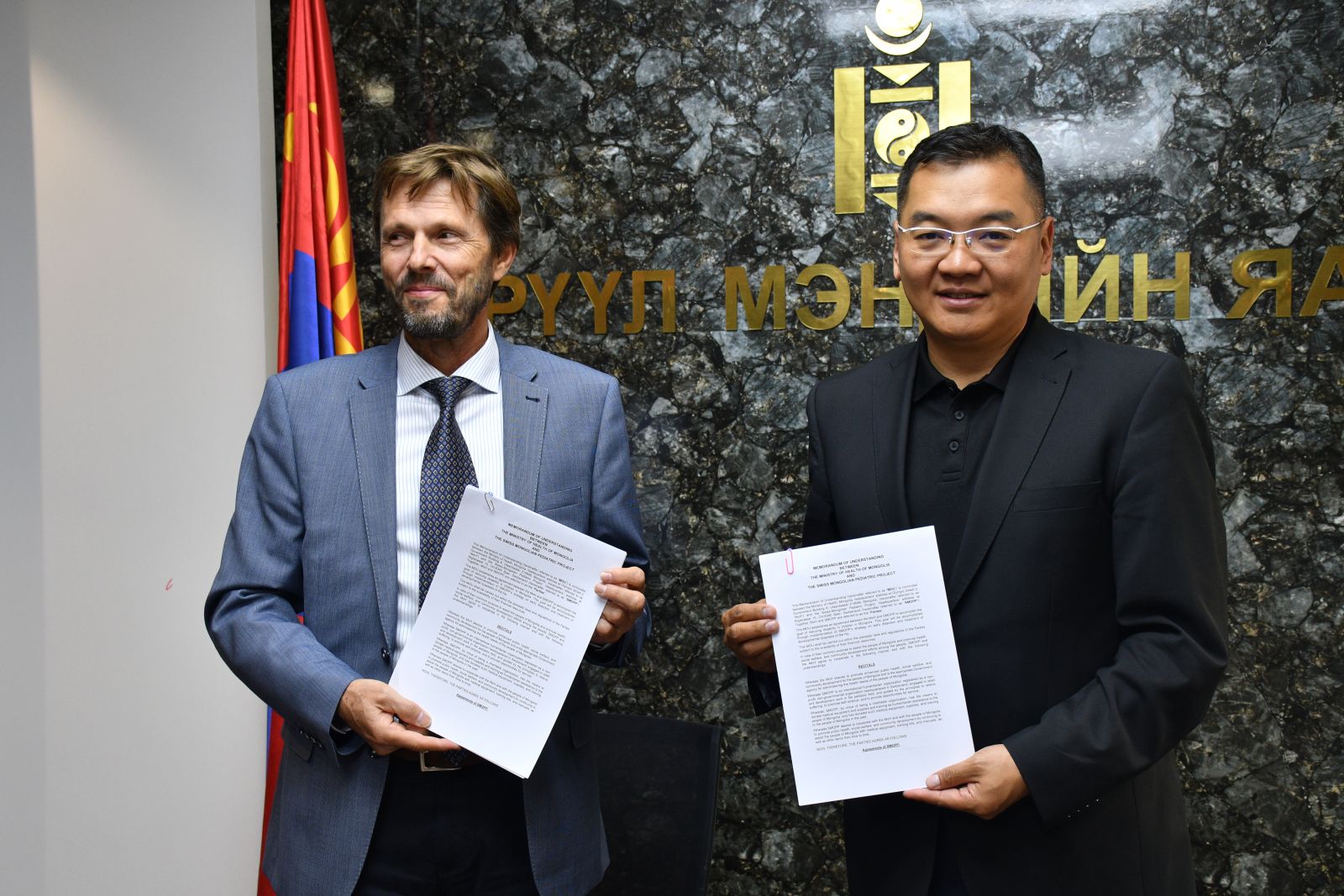 Эх, хүүхдийн тусламж, үйлчилгээнд бодит үр дүнг гарган ажиллаж буй энэхүү төслийн үйл ажиллагааг дэмжин цаашид үргэлжлүүлэн ажиллахаар Эрүүл мэндийн яам, "Монгол-Швейцарийн хамтарсан хүүхдийн төсөл" хоорондын хамтран ажиллах, харилцан ойлголцлын санамж бичигт Засгийн газрын гишүүн, Эрүүл мэндийн сайд С.Энхболд, SMOPP төслийн дэд ерөнхийлөгч, Швейцарын Хүүхдийн хэт авиан нийгэмлэгийн ерөнхийлөгч Раоул Шмидт нар гарын үсэг зурлаа. Эрүүл мэндийн яамны Төрийн нарийн бичгийн дарга Ц.Эрдэмбилэг төслийн багийн гишүүдтэй уулзаж, цаашдын хамтын ажиллагааны талаар санал солилцон, төслийн хэрэгжилтэнд амжилт хүсэв.