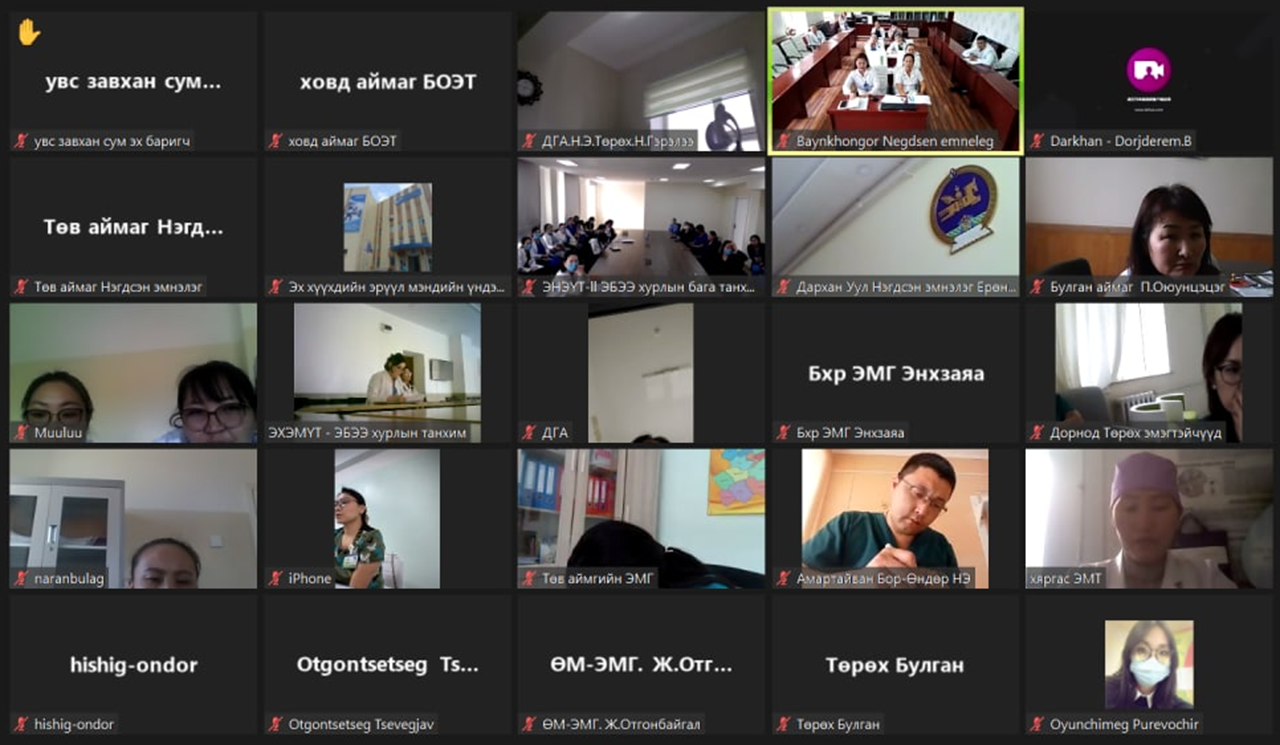 ЭХЭМҮТ-ийн Тандалт судалгааны албанаас эхийн эндэгдлийн тохиолдолд суурилсан сургамж, дүгнэлтийг танилцуулж, цаашид эх хүндэрч, эндэхээс сэргийлэх зорилгоор “Цочмог эндокардит” сэдэвт цахим хурлыг амжилттай зохион байгууллаа.Хуралд Хүрээ амаржих газар, Амгалан амаржих газар, ЭНЭҮТ II, Баянгол, Сонгинохайрхан, дүүргийн ЭМТ, аймгийн ЭМГ-ын удирдлагууд, эх барих эмэгтэйчүүдийн асуудал хариуцсан мэргэжилтэн, аймгийн нэгдсэн эмнэлэг, БОЭТ-ийн эх барих эмэгтэйчүүдийн зөвлөх эмч, ЭМТҮЧАБА-ны дарга, менежер, эх барих эмэгтэйчүүд, сум, өрхийн эмч, эрүүл мэндийн нийгмийн ажилтан бүхий 105 эмч, мэргэжилтэн 100 холболтоос цахимаар оролцлоо.
