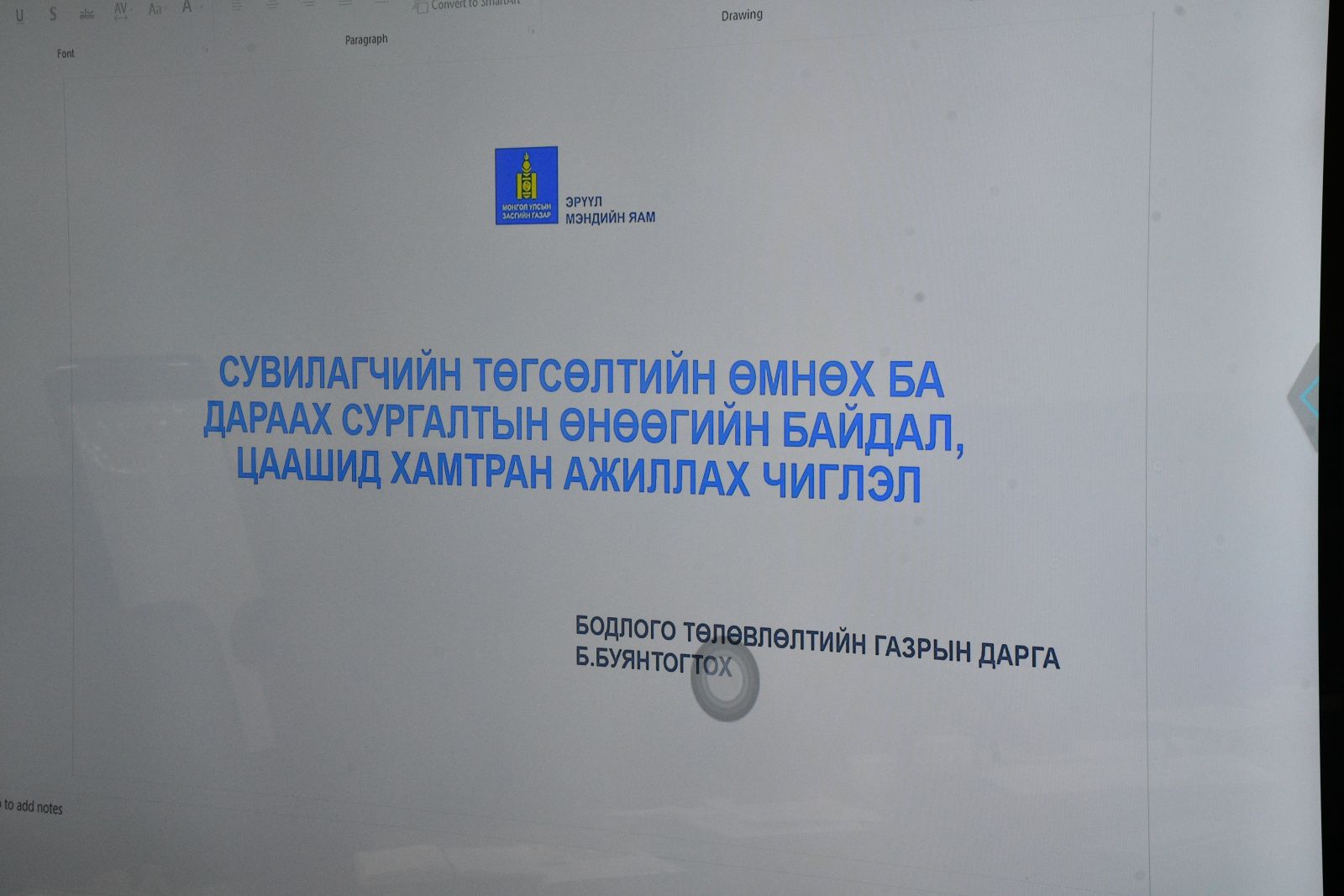 Уулзалтад Эрүүл мэндийн яамны Бодлого төлөвлөлтийн газрын дарга Б.Буянтогтох, Эрүүл мэндийн сайдын зөвлөх О.Батбаяр болон Бодлого төлөвлөлтийн газрын Стратеги удирдлагын хэлтэс, Судалгаа төлөвлөлтийн хэлтсийн дарга нар, Анагаахын шинжлэх ухааны үндэсний их сургуулийн Сувилахуйн сургууль, Ач Анагаах ухааны их сургуулийн Сувилахуйн тэнхим, Глобал удирдагч их сургуулийн Сувилахуйн сургууль, Их Засаг олон улсын их сургуулийн Анагаахын тэнхим, Олон улсын Улаанбаатарын их сургуулийн Сувилахуйн сургууль, Оточ манрамба их сургуулийн Бакалаврын сургалтын алба, Сити их сургуулийн Сувилахуйн тэнхимийн эрхлэгч, Шинэ анагаах ухаан их сургуулийн Сургалтын бодлогын зохицуулалтын газар, Энэрэл дээд сургууль, Этүгэн их сургуулийн Сувилахуйн сургуулийн удирдлагууд оролцов. Уулзалтын эхэнд Бодлого төлөвлөлтийн газрын дарга Б.Буянтогтох “Сувилагчийн төгсөлтийн өмнөх ба дараах сургалтын өнөөгийн байдал, цаашид хамтран ажиллах чиглэл” илтгэл тавьсны дараа уулзалтад оролцогчид дараах асуудлаар харилцан санал солилцлоо.