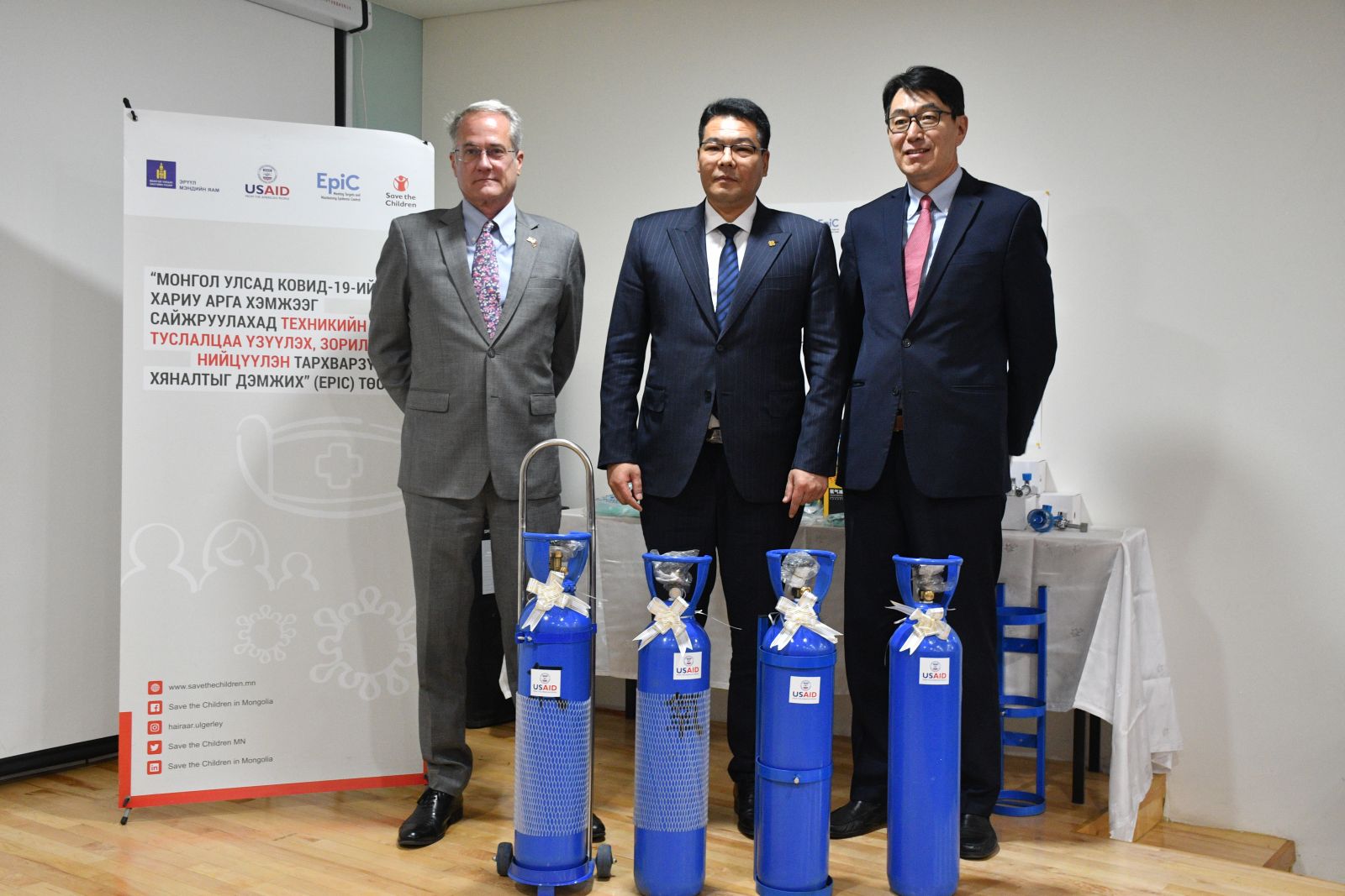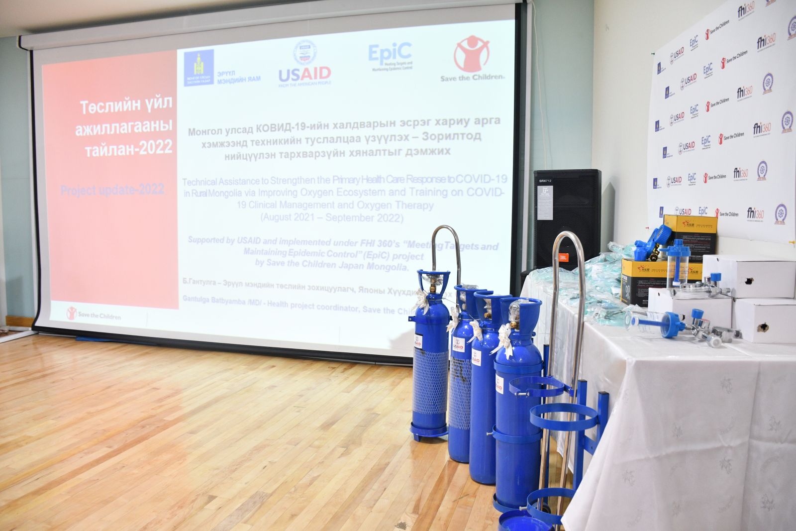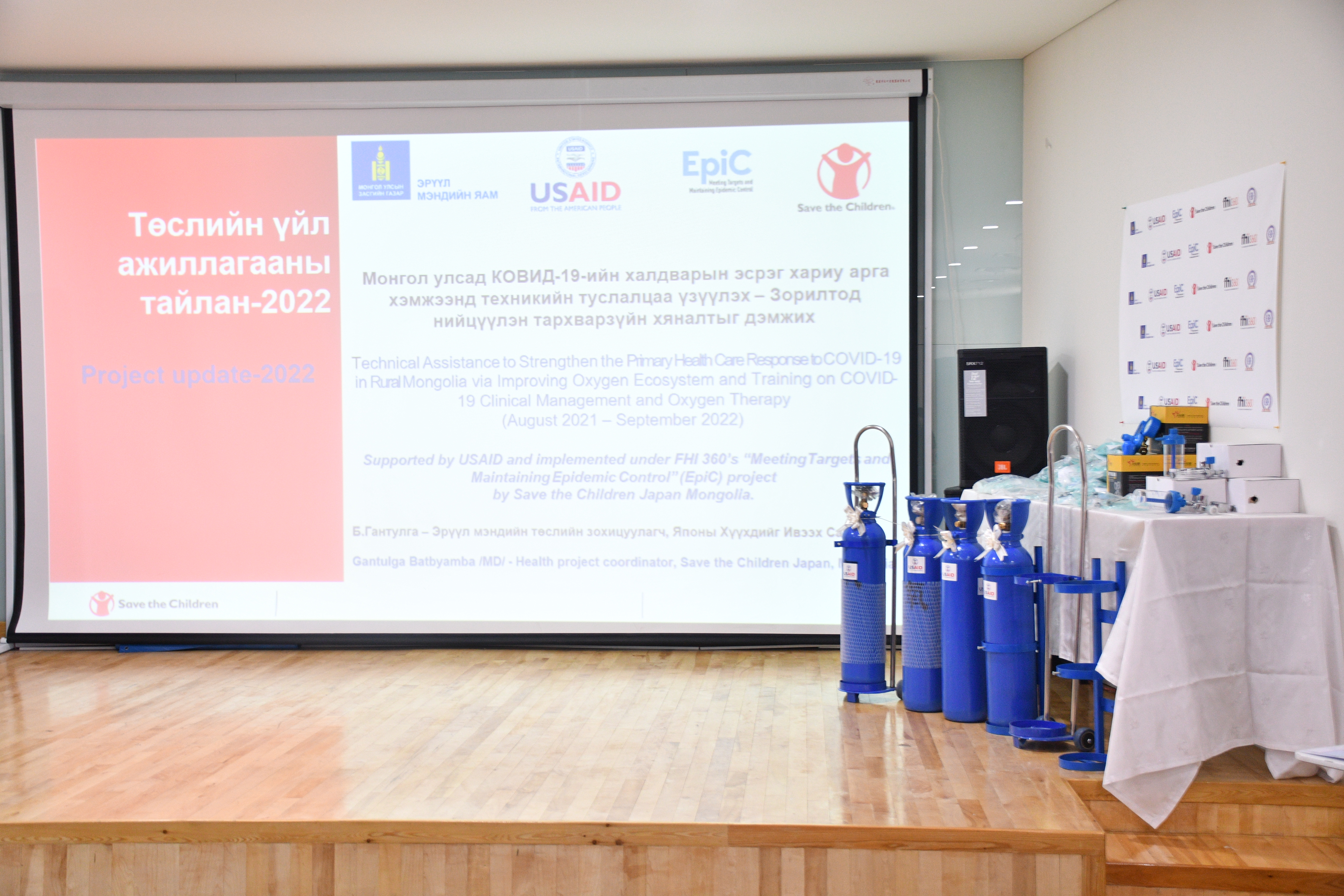 Монгол Улсын хэмжээнд анхан шатны эрүүл мэндийн байгууллагын түвшинд хүчилтөрөгч эмчилгээний чадавхийг үнэлэн 200 суманд хүчилтөрөгчийн баллон, дагалдах хэрэгслийг төсөл хэрэгжүүлэгч байгууллагуудын дэмжлэгтэйгээр сумын эрүүл мэндийн төвүүдэд гардуулж өглөө.