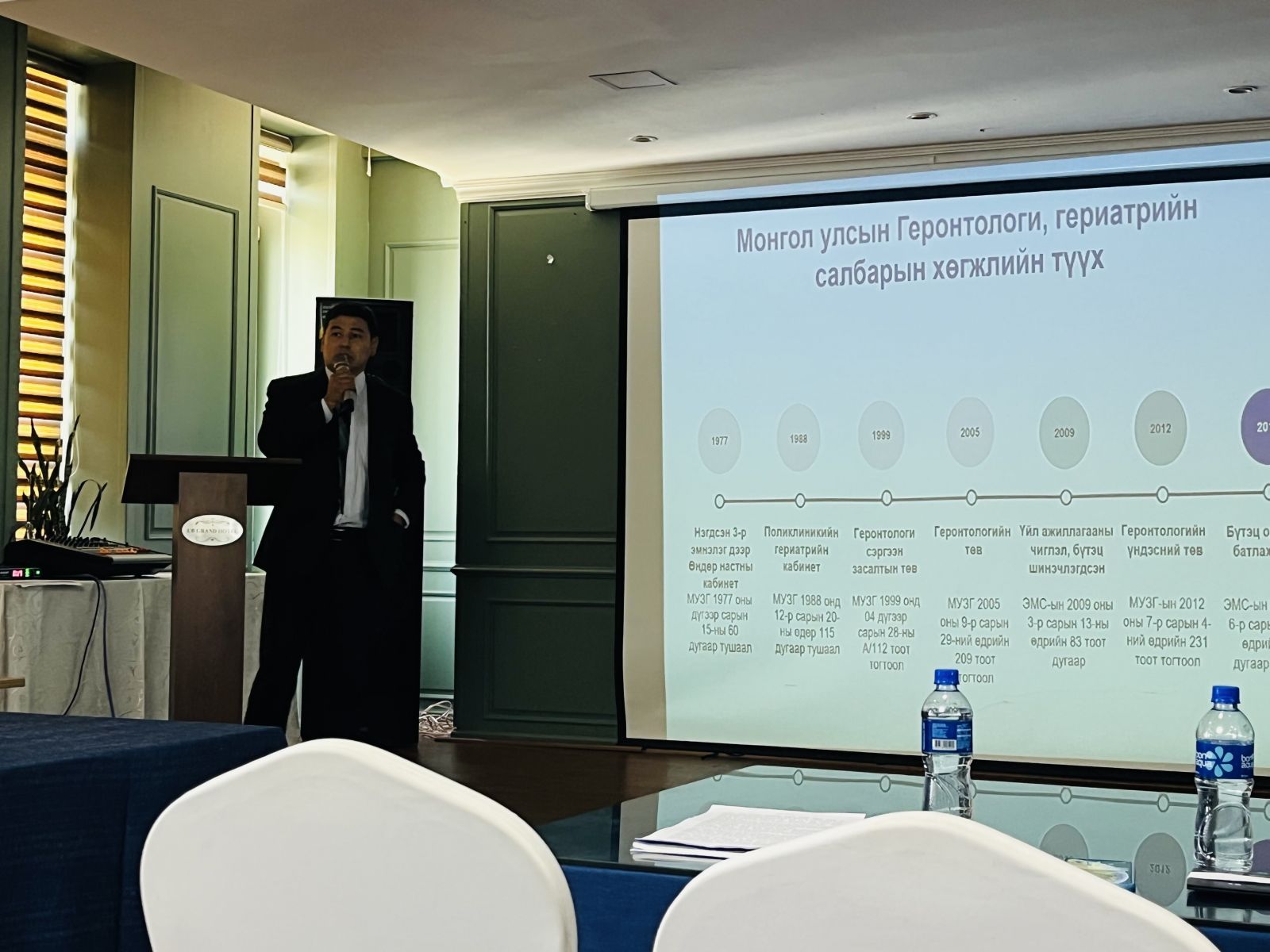 Эрүүл мэндийн яам, Геронтологийн үндэсний төв хамтран Номхон далайн баруун бүсийн эрүүл насжилтын арван жилийн төлөвлөгөөг танилцуулах, настанд ээлтэй нийгмийг бий болгоход салбар дундын оролцоог нэмэгдүүлэх зорилгоор уулзалт хэлэлцүүлэг зохион байгууллаа. Энэхүү уулзалтаар салбар тус бүр номхон далайн баруун бүсээс эрүүл насжилтад бэлдэн гишүүн орнууддаа зөвлөмж болгож буй төлөвлөгөөтэй уялдуулан үндэсний хэмжээнд эрүүл насжилтад бэлдэн хэрэгжүүлэх үйл ажиллагааны төлөвлөгөөг боловсруулахад санал авах зорилготой зохион байгуулагдав. Мөн настны эрүүл мэндийн тусламж үйлчилгээний чиглэлээр хэрэгжүүлж буй бодлого чиглэл, насжилт судлал, настны өвчлөлийн байдал, сүүлийн жилүүдэд хийгдсэн судалгааны үр дүнгүүд, настанд хүрч үйлчилж буй тусламж үйлчилгээний байдал хүртээмж, настанд ээлтэй орчин бүрдүүлэхэд тулгамдаж буй асуудлуудын талаар хэлэлцлээ.