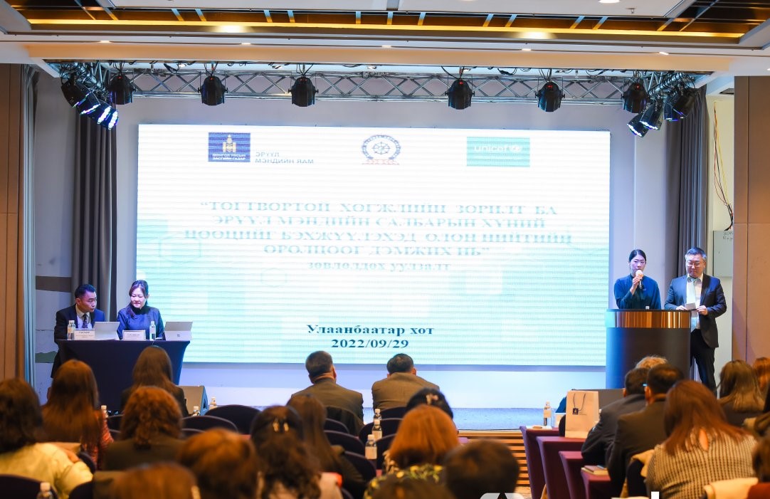 “Тогтвортой хөгжлийн зорилт ба эрүүл мэндийн салбарын хүний нөөцийг бэхжүүлэхэд олон нийтийн оролцоог дэмжих нь” зөвлөлдөх уулзалт өнөөдөр эхэллээ. Энэхүү уулзалтыг Нэгдсэн үндэстний байгууллагын Хүүхдийн сантай хамтран зохион байгуулж байна. Уулзалтад хот ба орон нутгийн засаг дарга нар, эрүүл мэндийн газрын ба нэгдсэн эмнэлгийн дарга нар, өрхийн эмч нар, судлаачид болон бусад олон улсын байгууллагын төлөөлөл оролцож байна.