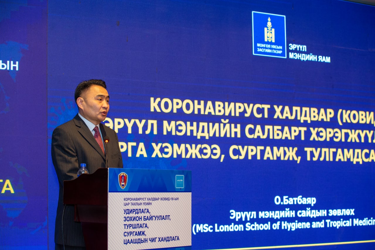 ЭМЯ-аас “Коронавируст халдварын цар тахлын үед эрүүл мэндийн салбараас авч хэрэгжүүлсэн арга хэмжээ, тулгамдсан асуудал” сэдвээр илтгэл тавьж, цар тахлын сургамж нь юу байв гэдэг асуудлыг хөндлөө. Цар тахал дэгдсэн гурав дахь өвөл эхэлж, ДЭМБ, олон улс орнууд цар тахлыг намжсан гэж зарлаж байгаа хэдий ч бид тайвшрах болоогүй. Учир нь дараа, дараагийн шинэ хувилбарууд гарах эрсдэл байсаар байна. Бид дараагийн цар тахал эхлэх үеийн хариу арга хэмжээ, бэлэн байдал, вакцинжуулалт, цахимжуулалт, хууль эрх зүйн асуудлыг эхнээс нь цэгцлэх бодит ажлуудыг хийж байна. Монгол улсын хувьд цар тахлын үед эрүүл мэндийн тусламж, үйлчилгээг үзүүлэхдээ эрүүл мэндийн даатгалын сангаас санхүүжүүлсэн бол бусад улс орнууд эрсдэлийн сан, нөөц сангаасаа зарцуулж байсан ба бид ч мөн ирээдүйд бий болох цар тахал, халдварт өвчний үед санхүүжилтийн асуудлыг эртнээс төлөвлөн нөөц хөрөнгийг бүрдүүлэх, хууль эрх зүйн орчныг тодорхой болгох ажлын хүрээнд зарим эрх зүйн тодотголыг УИХ-д өргөн барьж байна гэдгийг онцоллоо.